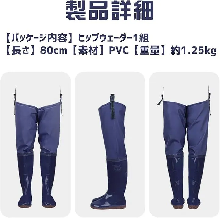 「パッケージ内容」ヒップウェーダー1組「長さ」80cm「素材」PVC「重量」約1.25kg