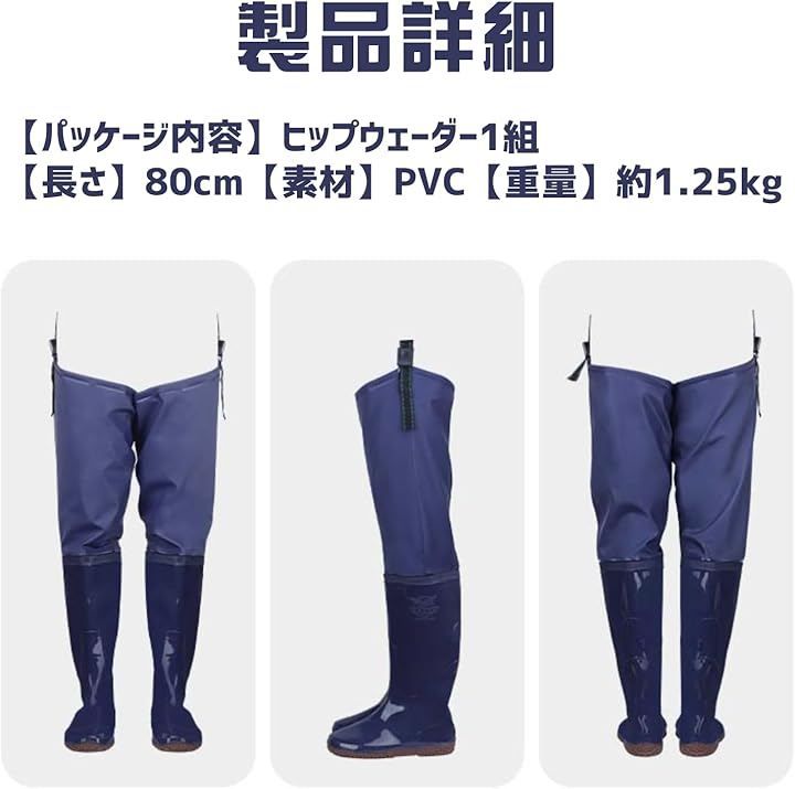 「パッケージ内容」ヒップウェーダー1組「長さ」80cm「素材」PVC「重量」約1.25kg