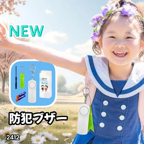 #2412 防犯ブザー ホワイト 1個 大音量 女性 小学 LEDライト 防水 130db 電池付き 反射板 キーホルダー 反射板テープ ※北海道、沖縄本島、沖縄の離島、その他離島へは別途配送料有り
