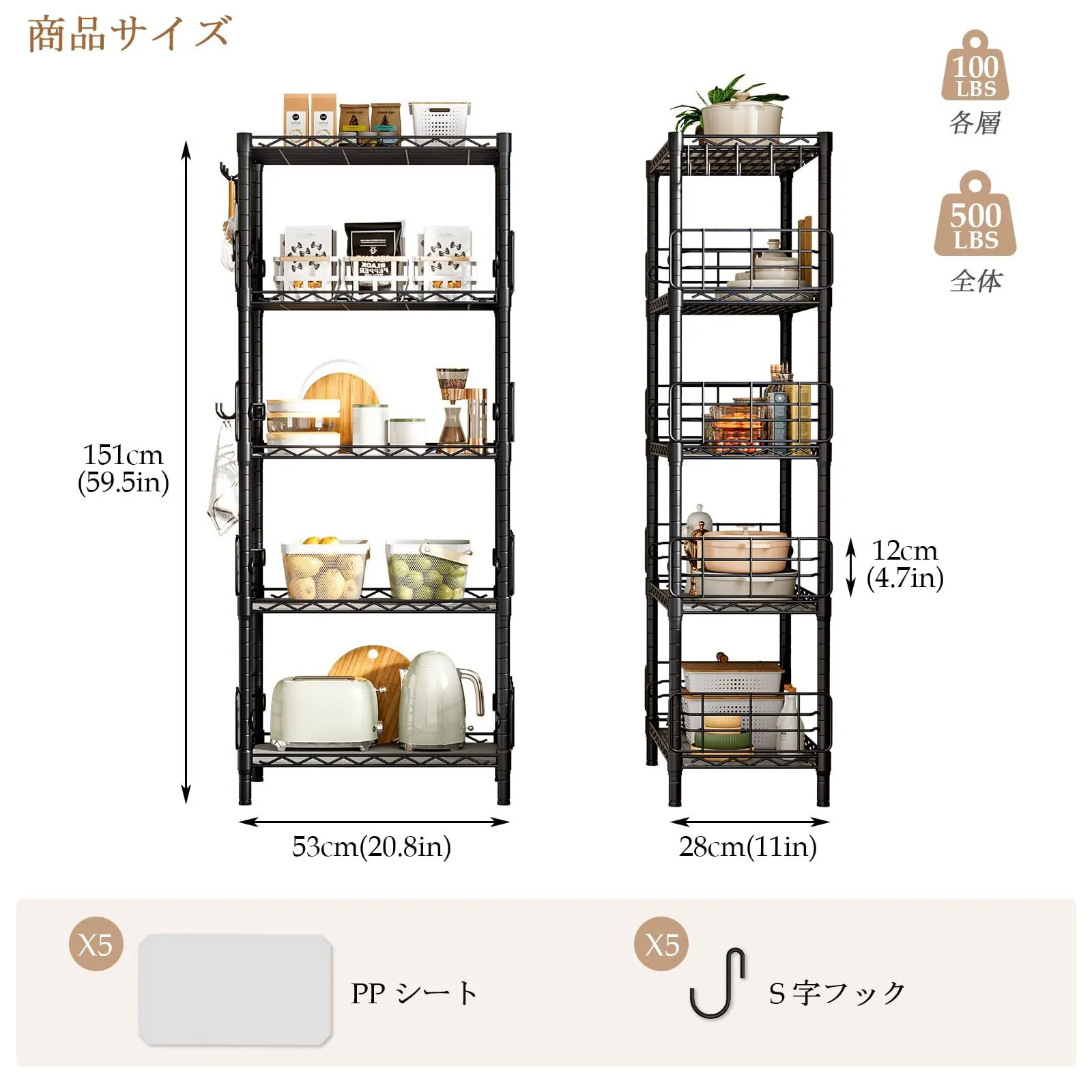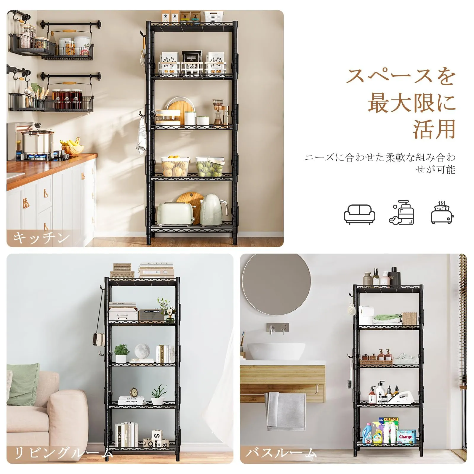 「多機能収納」重荷重対応スチールラックは、あらゆる収納ニーズに対応します。このメタルスチールラックは、洗濯室、浴室、キッチン、ガレージ、または収納室に最適で、空間を整然と保つお手伝いをします。