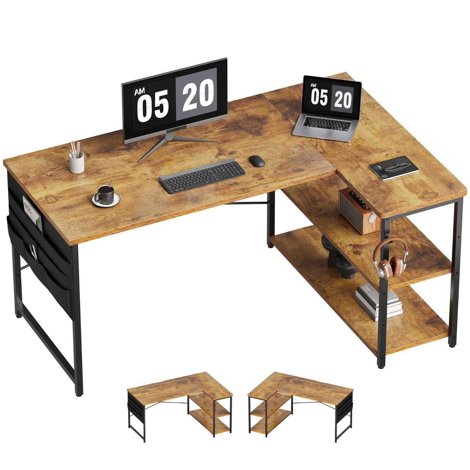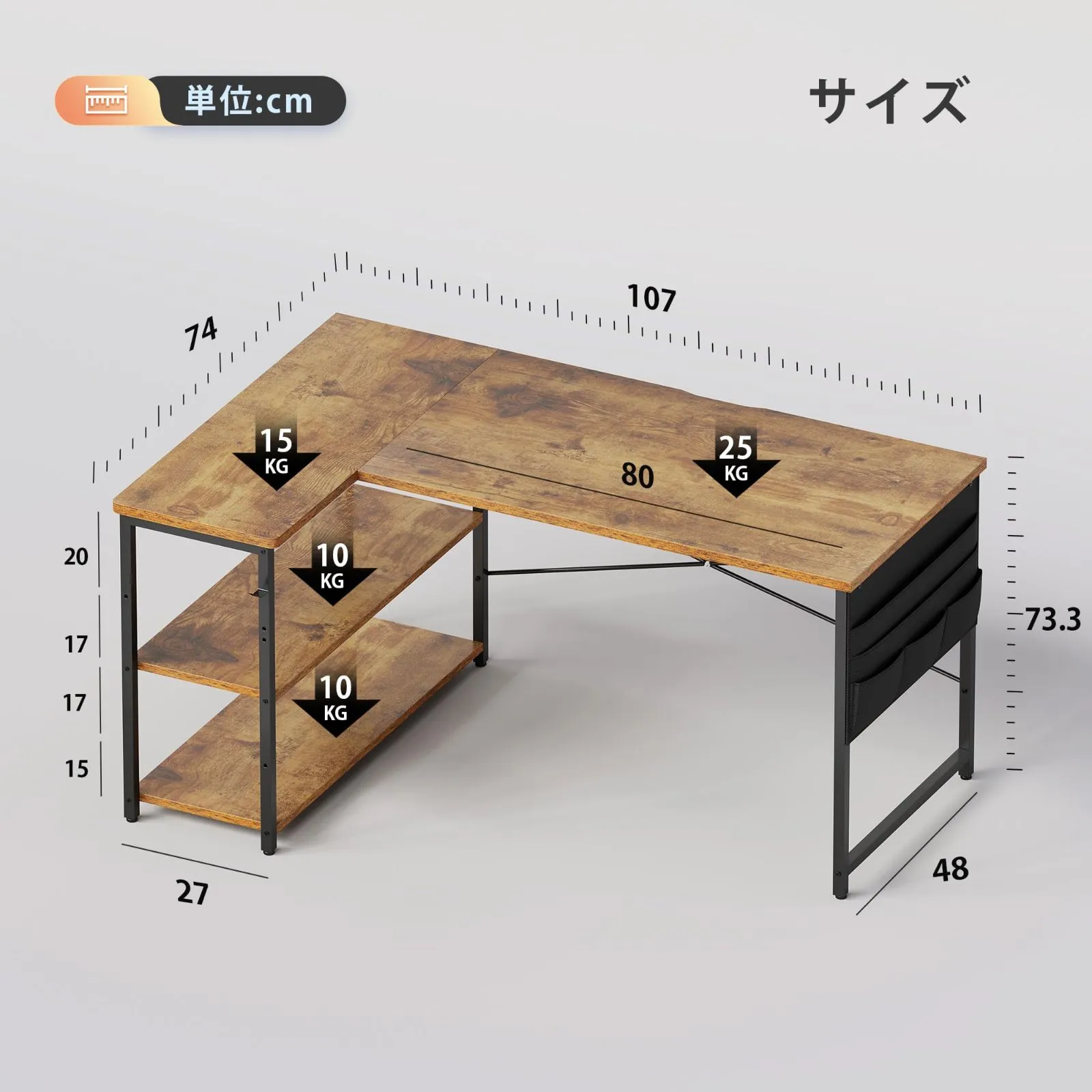 【数量限定】pcデスク l字デスク ゲーミングデスク 収納袋付き勉強机 幅107cm コーナーデスク 右棚左棚 学習机 本棚付き 机 パソコンデスク ビンテージ YeTom