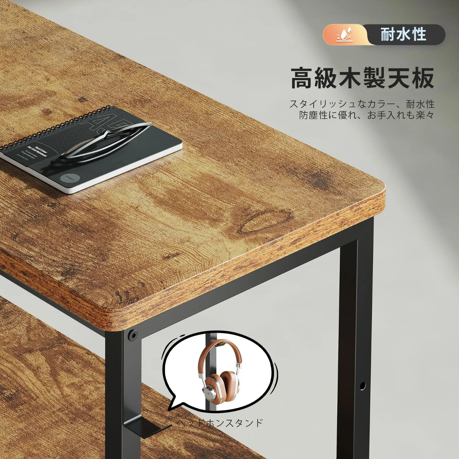 YeTom パソコンデスク 机 学習机 右棚左棚 幅107cm ゲーミングデスク l字デスク pcデスク 収納袋付き勉強机 コーナーデスク 本棚付き ビンテージ