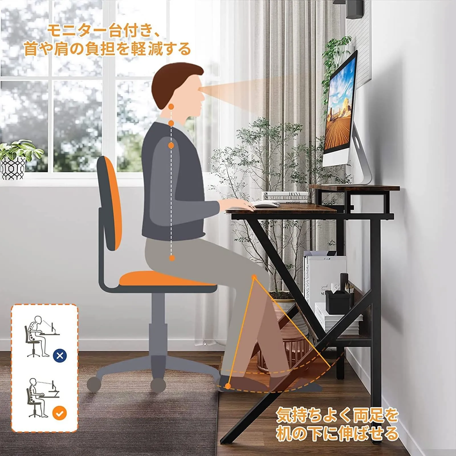 【新着商品】幅70cm×奥行48cm モニター台付き テレワークデスク 机 pcデスク 棚付きデスク コンパクト パソコンデスク 省スペース 在宅勤務 頑丈で組立簡単 おしゃれ KKL 大人/子供用 収納 モニターアーム対応 ビンテージ