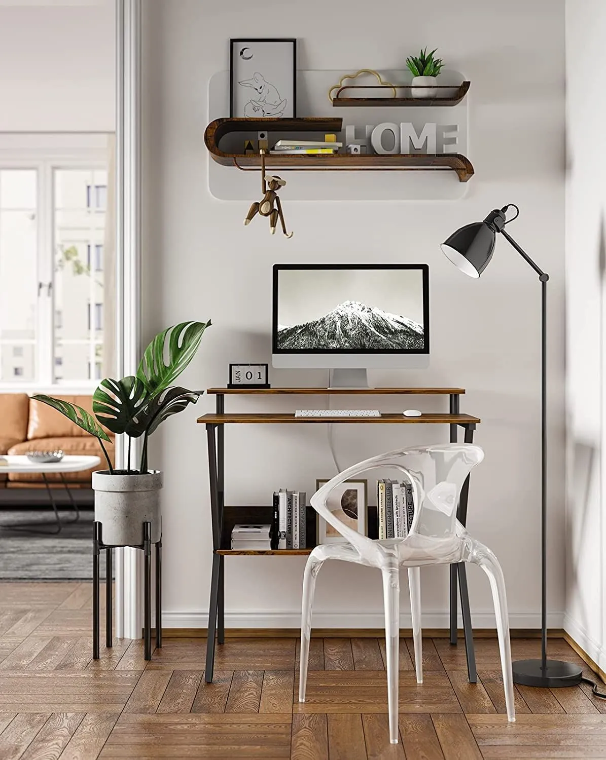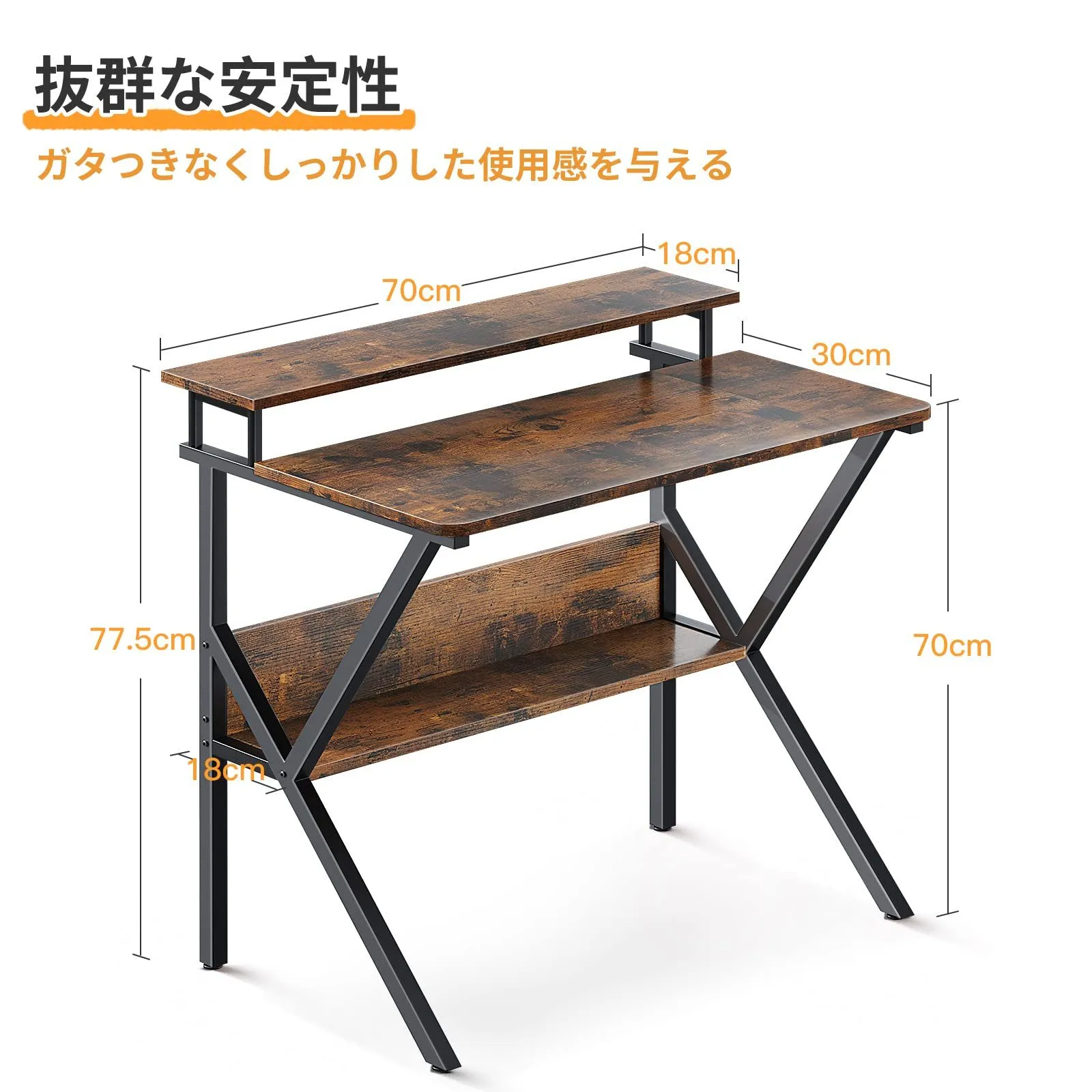KKL パソコンデスク モニター台付き 幅70cm×奥行48cm テレワークデスク 机 pcデスク 棚付きデスク コンパクト 省スペース 在宅勤務 頑丈で組立簡単 おしゃれ 大人/子供用 収納 モニターアーム対応 ビンテージ