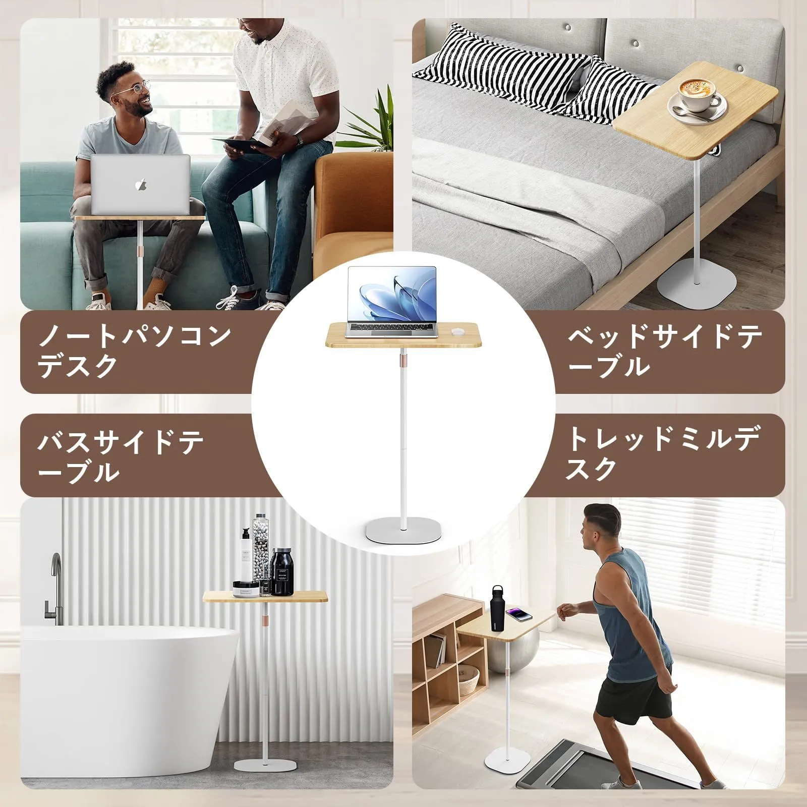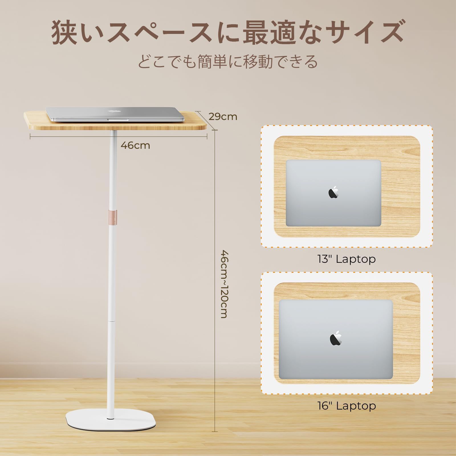 POLESTO ノートパソコン用スタンディングデスク サイドテーブル ベッドサイド ソファ 寝室テーブル 昇降式デスク ハイテーブル プロジェクター台 46cm~120cm高さ調節可能 おしゃれ 簡単組立 オフィス 会議室 ベッドルーム用 パラフィン木色