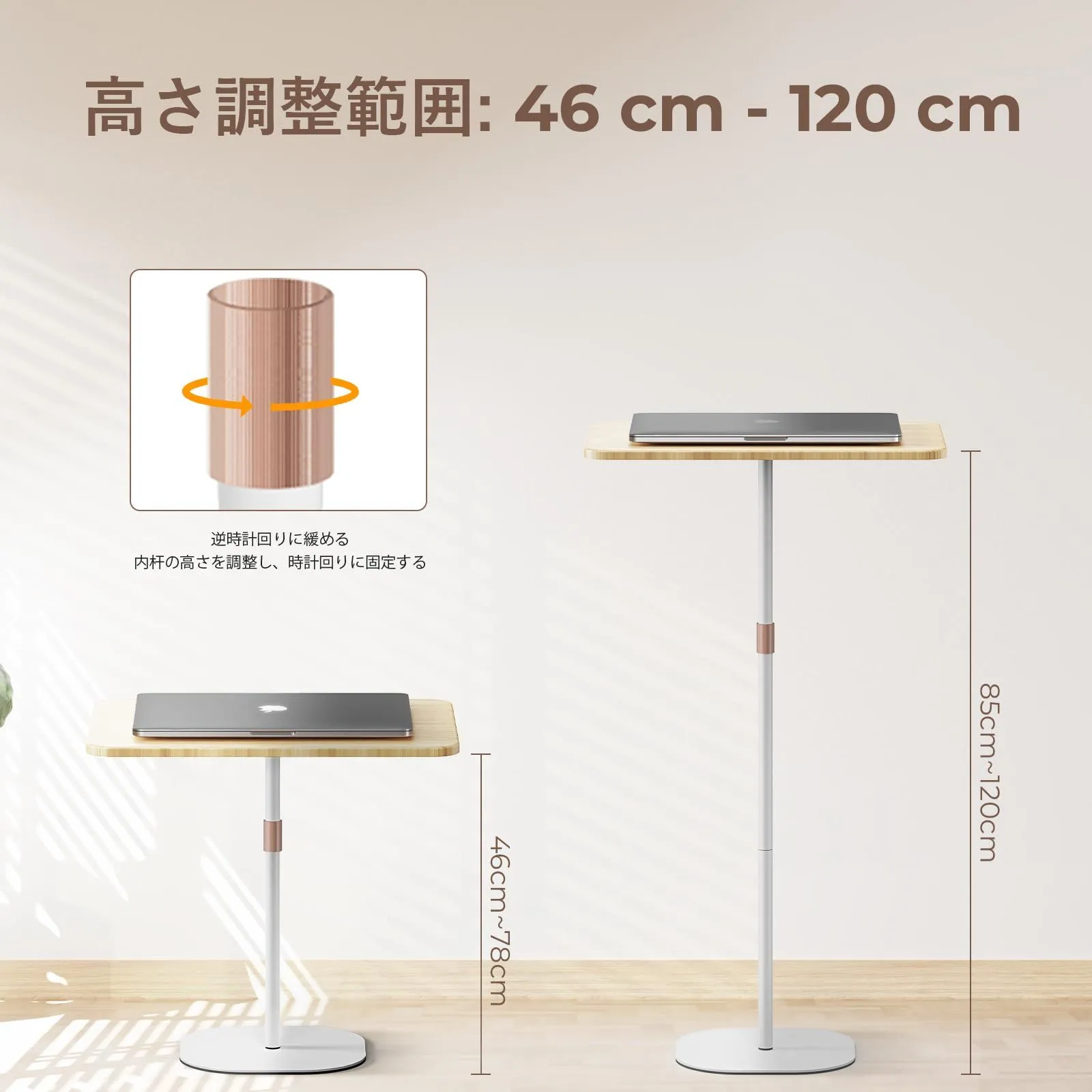 【数量限定】おしゃれ 46cm~120cm高さ調節可能 簡単組立 プロジェクター台 ハイテーブル オフィス 昇降式デスク 寝室テーブル 会議室 ソファ ベッドサイド ベッドルーム用 サイドテーブル ノートパソコン用スタンディングデスク パラフィン木色 POLE
