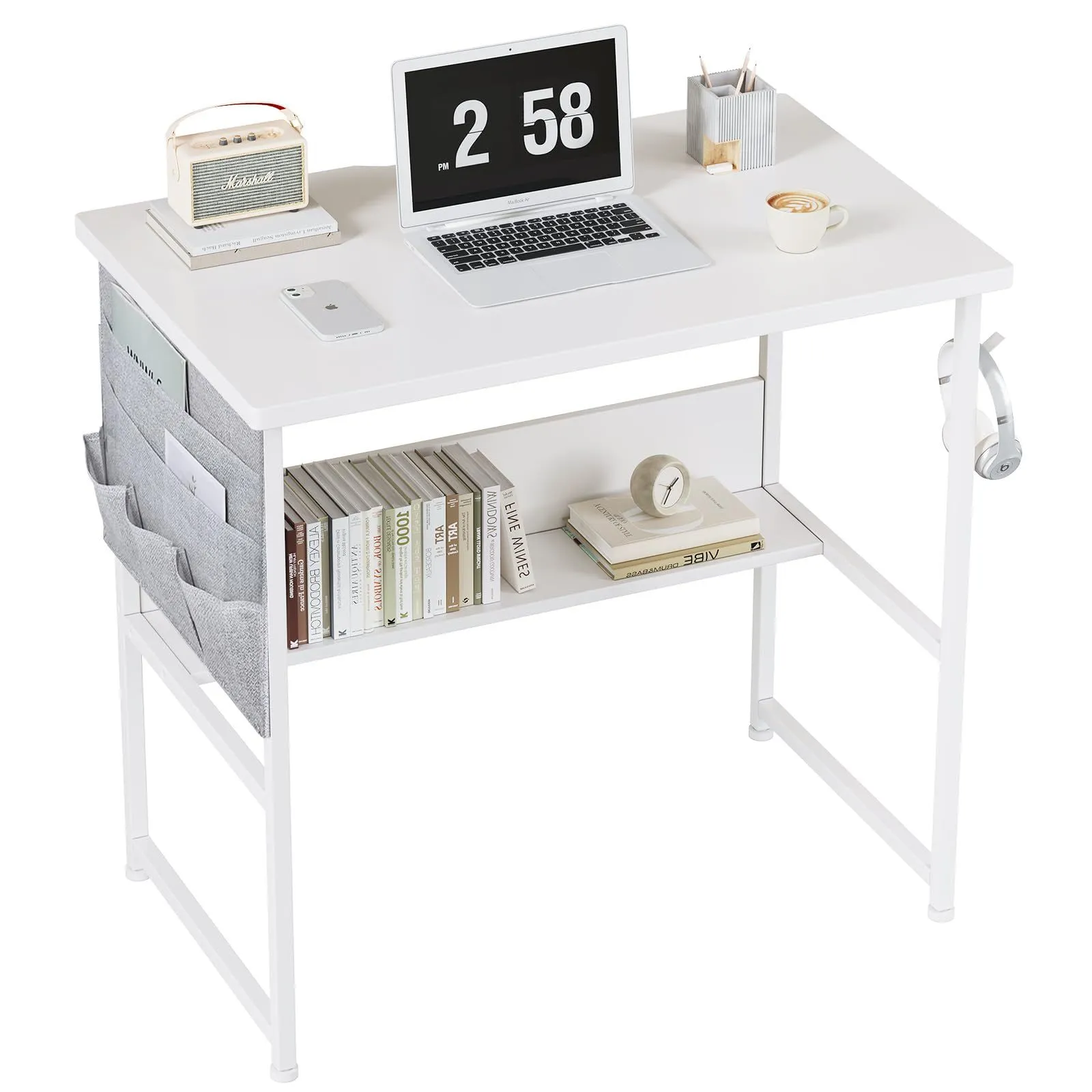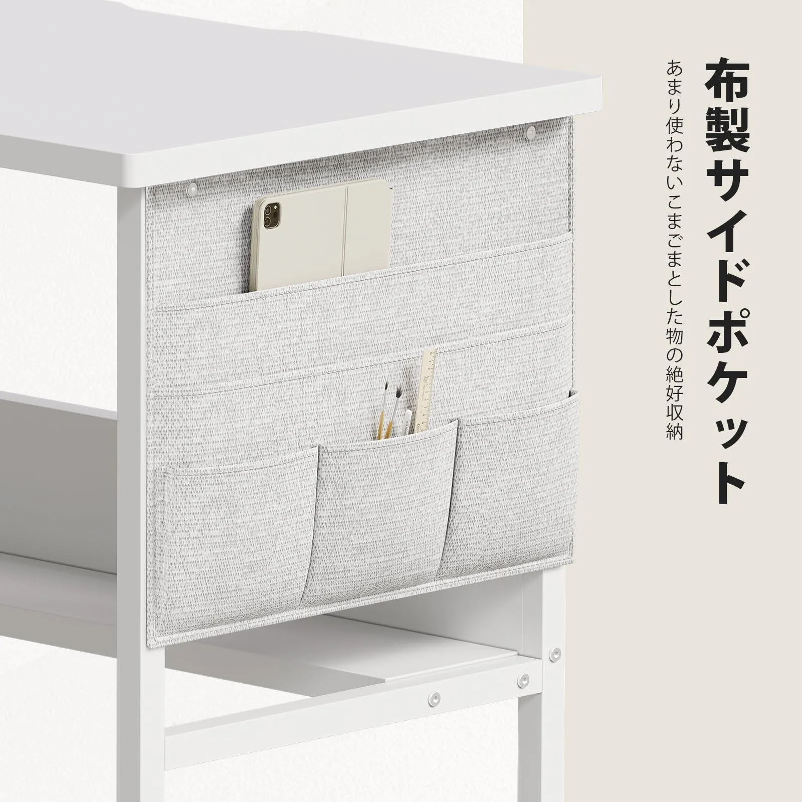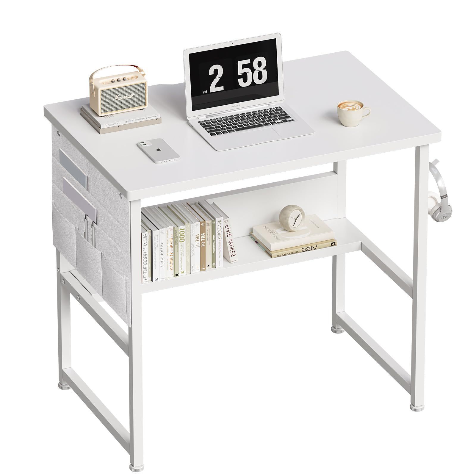 YeTom デスク パソコンデスク 机 pcデスク 幅80cm 勉強机 収納袋付き学習机 オフィスデスク 作業机 モニターアーム取付対応 組立簡単 白い
