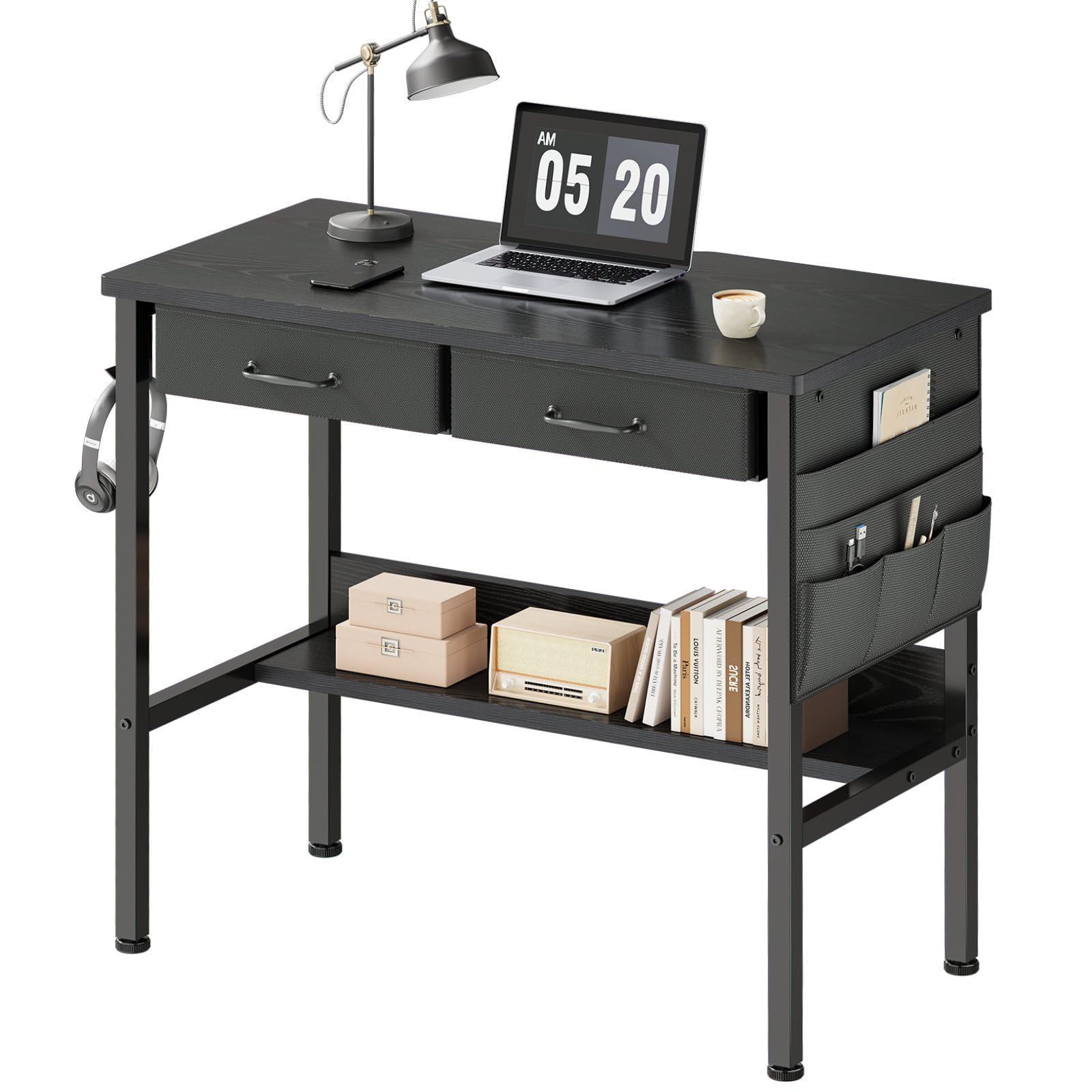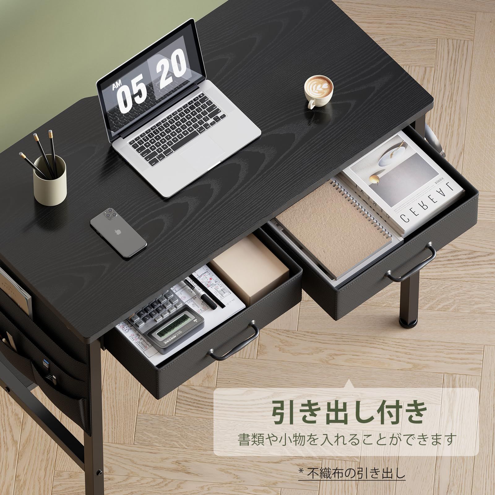 Maihail 机 pcデスクパソコンデスク コンパクト 一人暮らし 家具 学習机 引き出し付き 下収納棚付き 収納袋付き 小さい ワークデスク 幅80*奥行40cm 黒い