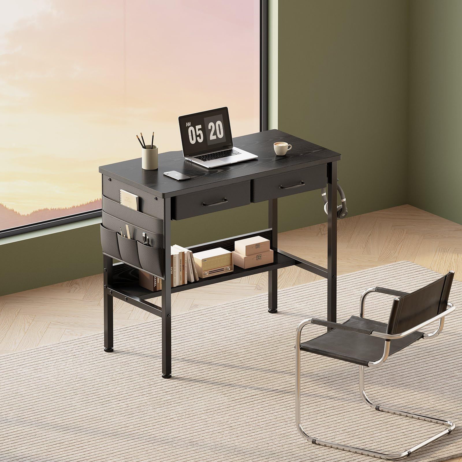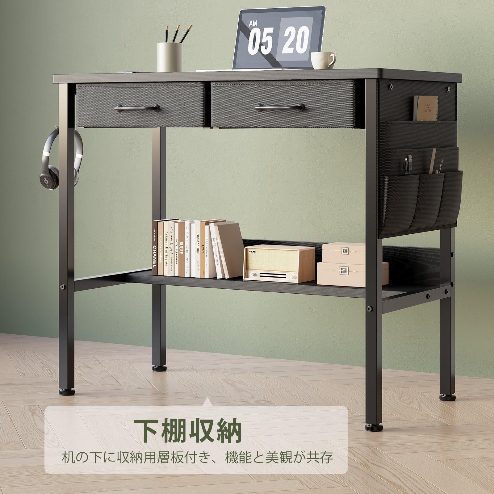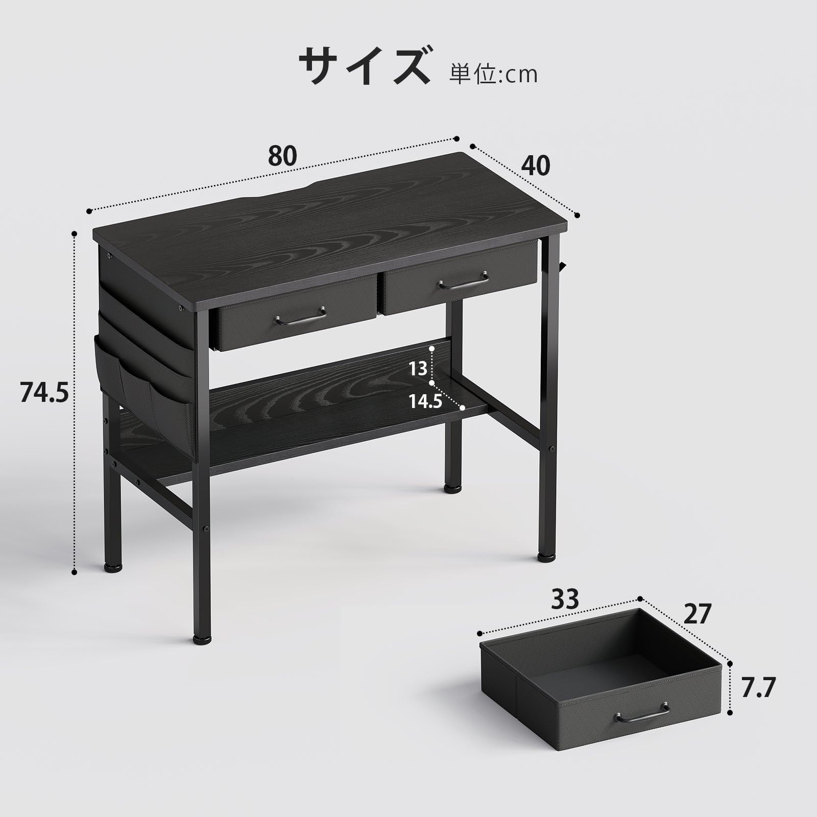 【在庫処分】一人暮らし コンパクト 家具 学習机 pcデスクパソコンデスク 引き出し付き 下収納棚付き 収納袋付き 机 小さい ワークデスク Maihail 幅80*奥行40cm 黒い