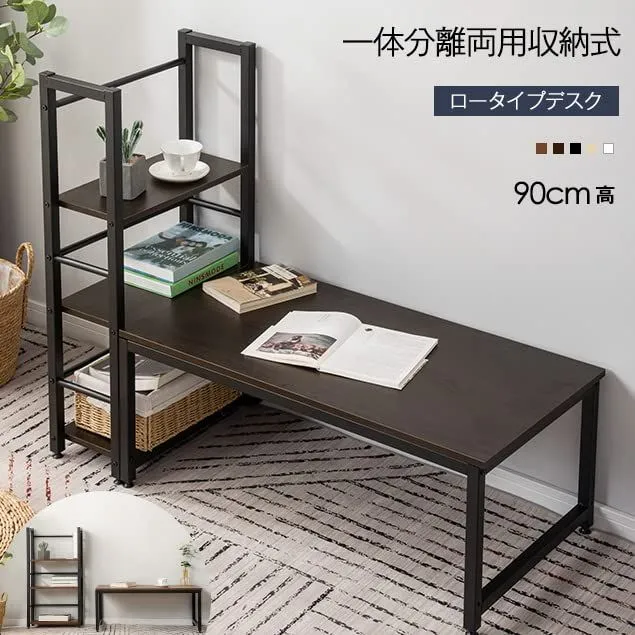 オーエスジェイ(OSJ) パソコンデスク ロータイプ 一体分離両用 3段シェルフ付 ローデスク パソコンデスク 木製 収納付 座デスク ミシン台 シェルフ付きデスク デスク付きシェルフ 書斎机 書斎デスク 学習机 勉強机