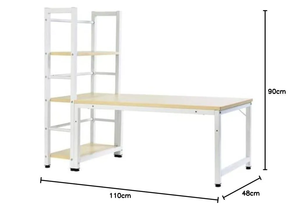 商品サイズ:幅110×奥行48×高さ90cm(アジャスター範囲):1.5cm品重量:13.3kg天板静止耐荷重:約80KG ラック静止耐荷重:約15KG梱包サイズ: 高さ11cm×奥行き51cm×幅94cm梱包重量:13.3KG