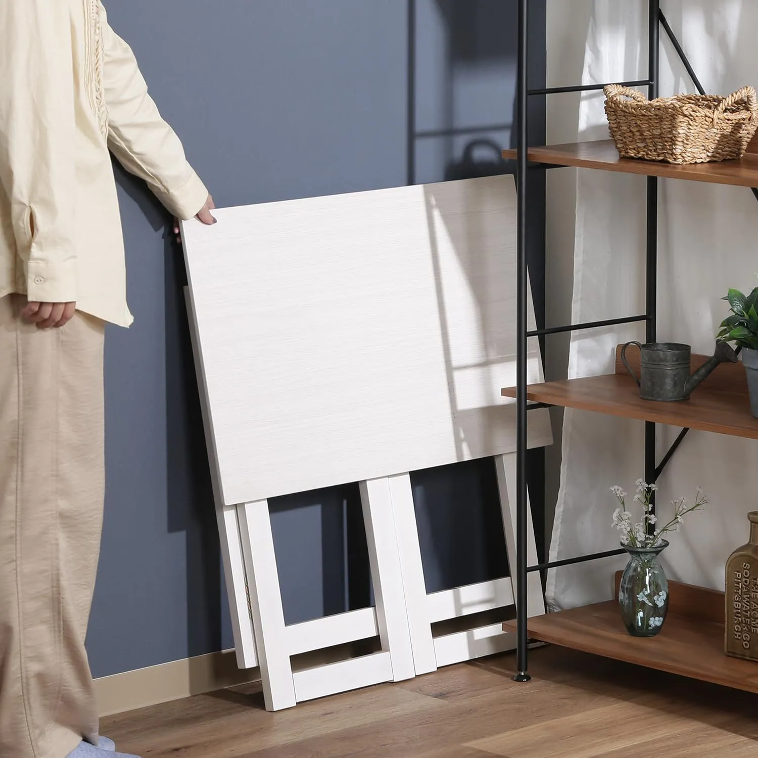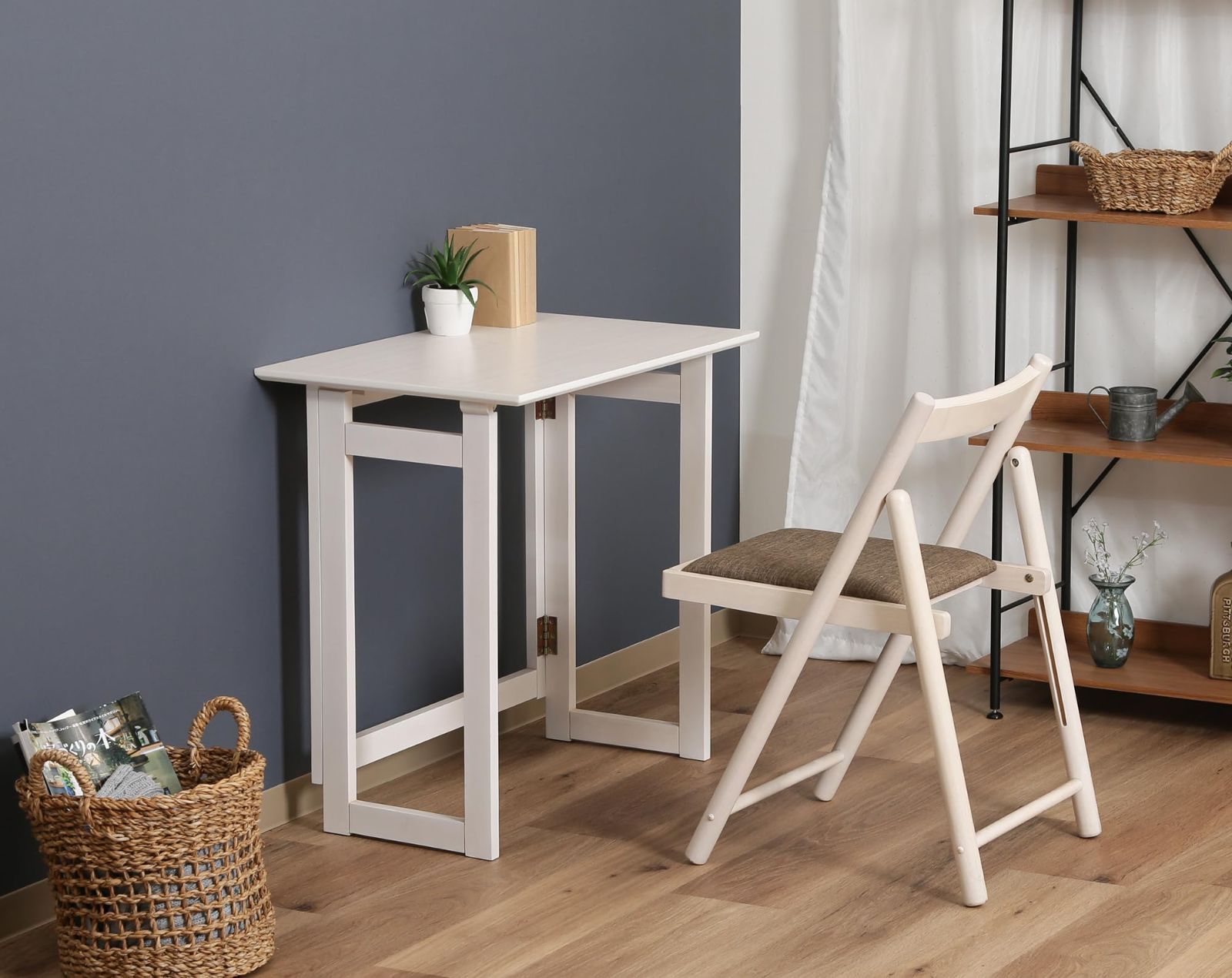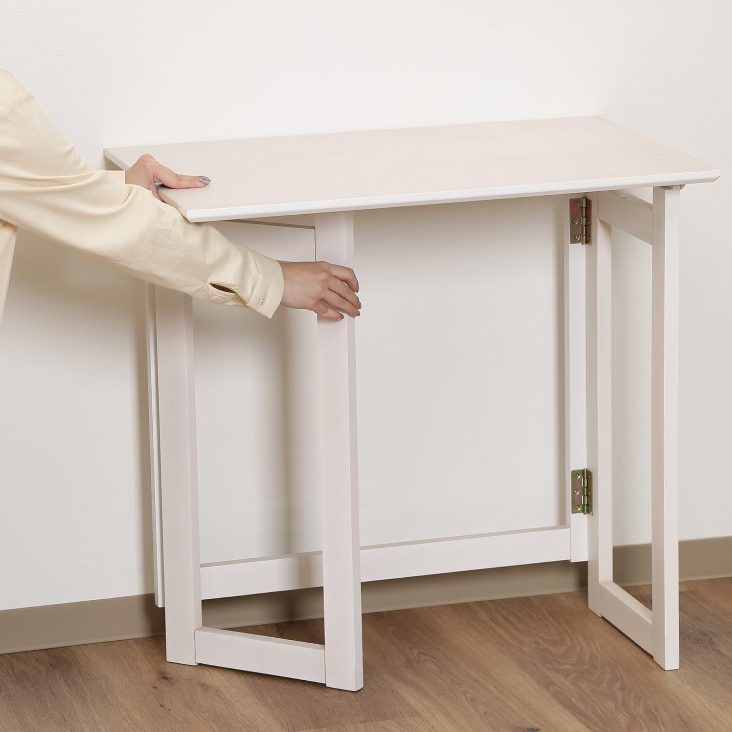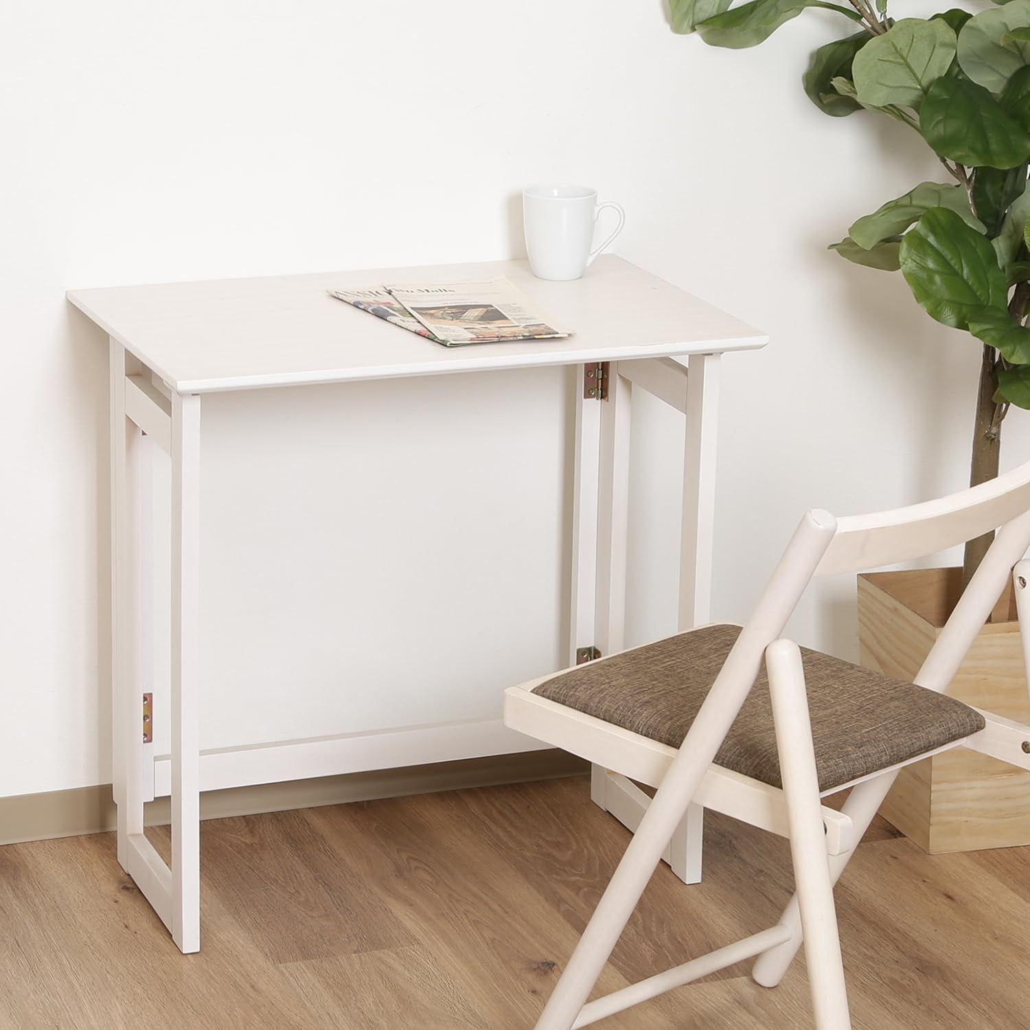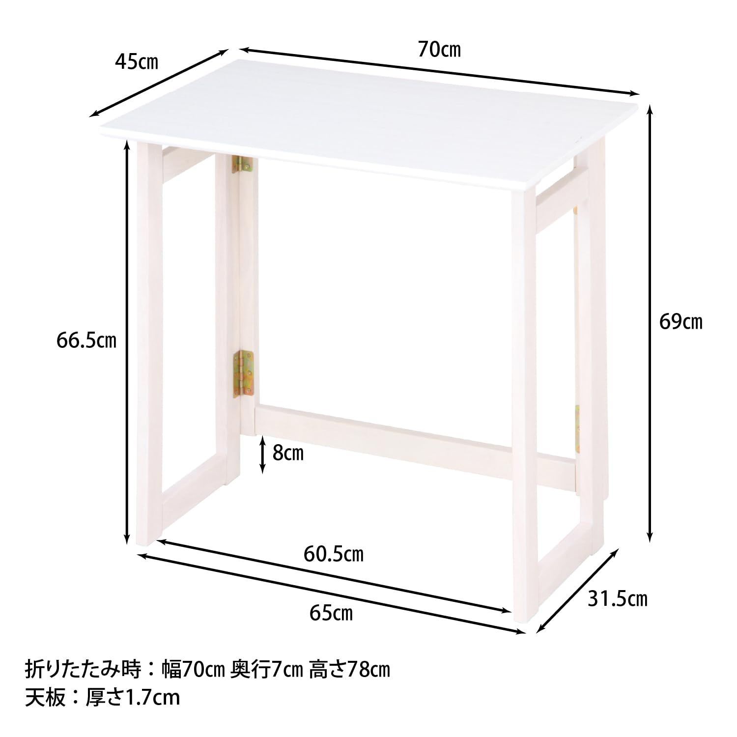 不二貿易 折りたたみデスク コンパクト テーブル 完成品 天然木 幅70×奥行45×高さ69cm ホワイトウォッシュ 収納 ミラン 10882