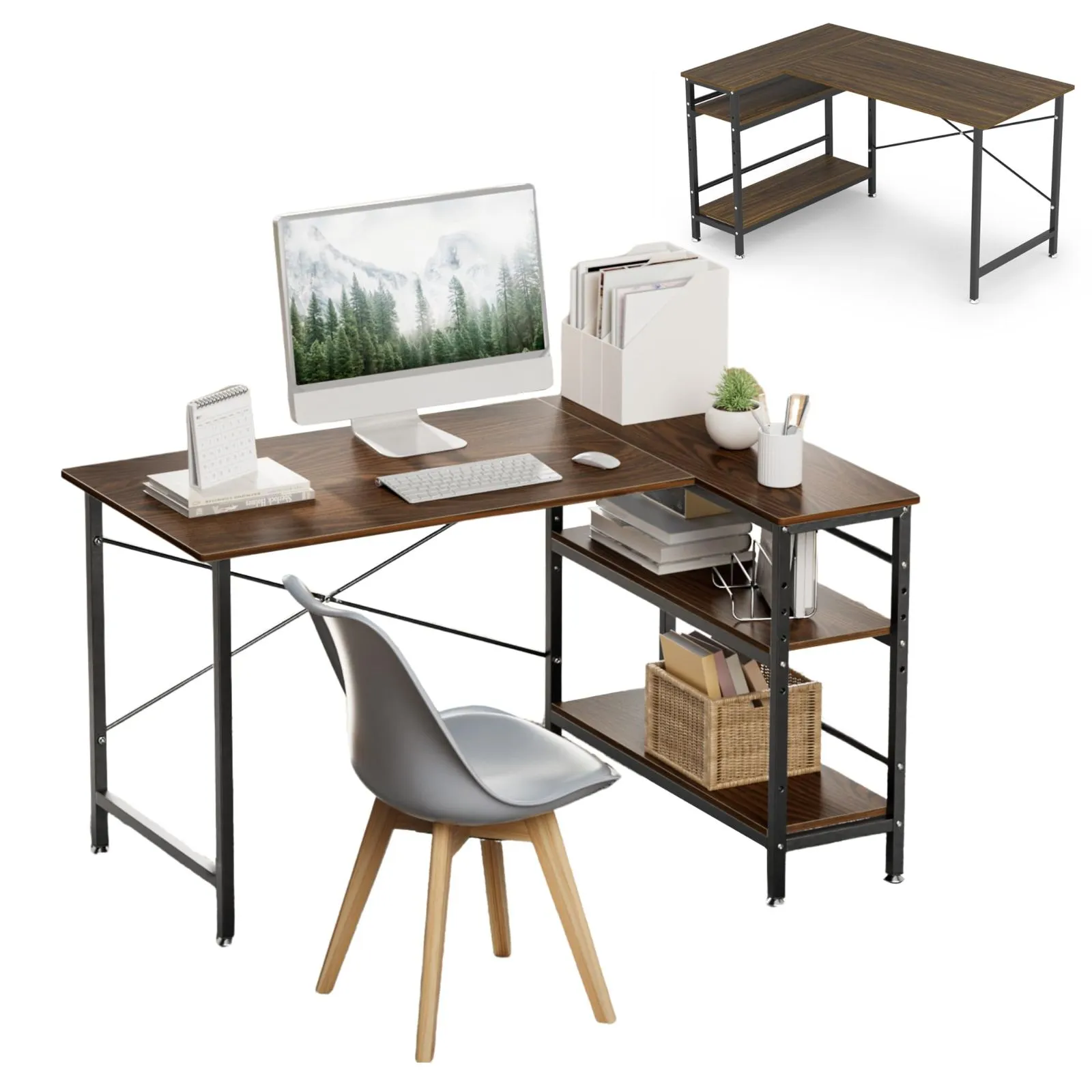 L字型 パソコンデスク 幅130cmx奥行90cm左右入れ替え可能 一体型のラック付き DEWEL ゲーミングデスク コーナーデスク 机 PCデスク フィスデスク 省スペース 横揺れ&グラつき防止 傷・汚れ・水分・熱に強い天板(メラミン加工) 木製 おしゃれ 書斎 在宅勤務 幅130×奥行90+60×高さ75cm ウォルナット(木目調)