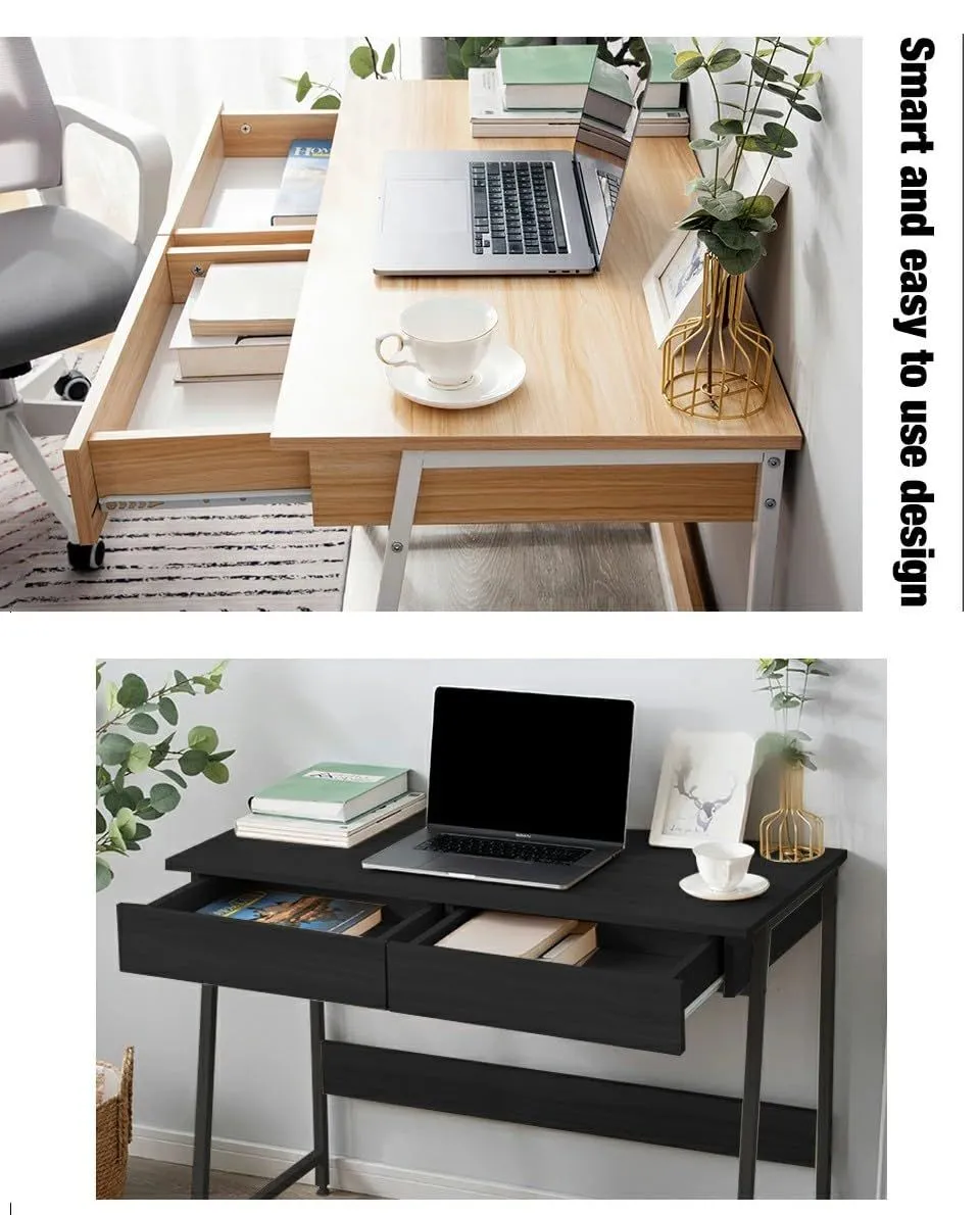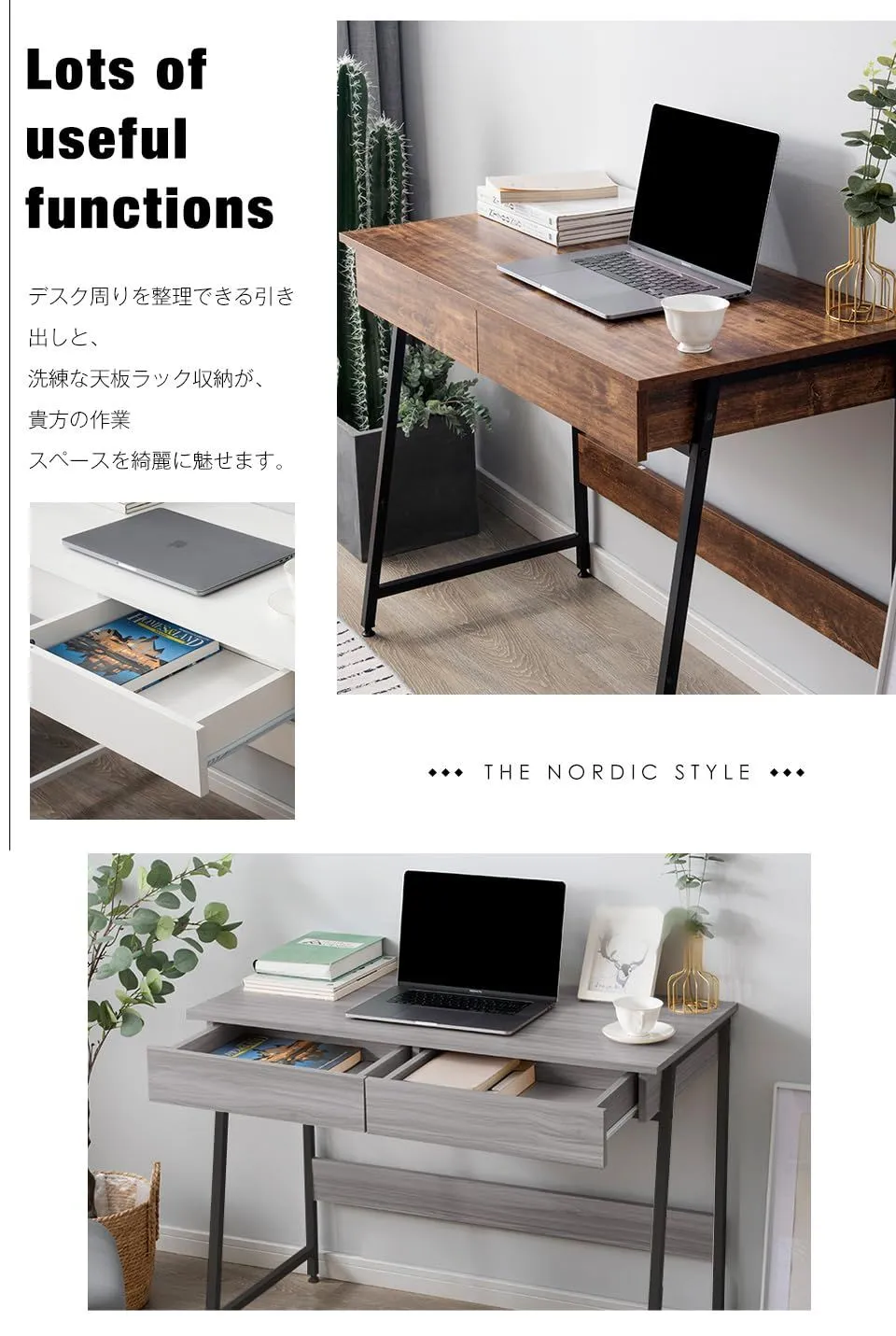 【大容量二つ引き出し付き】A4サイズも収納可能。手元に置いておきたい書類や筆記用具などの収納に便利です。スライドレールが付いているので、開閉はスムーズでストレスがありません。