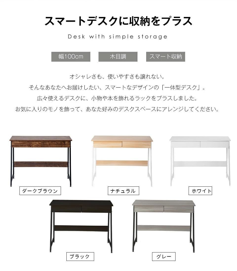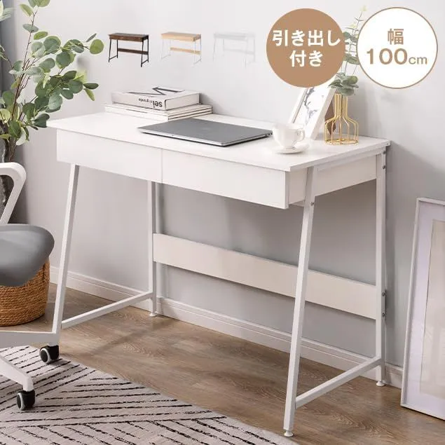 商品サイズ:幅100×奥行48×高さ76cm(アジャスター範囲):1.5cm 天板から床までの高さ:76cm 品重量:14.2kg 天板静止耐荷重:約40KG 引き出し:約5KG