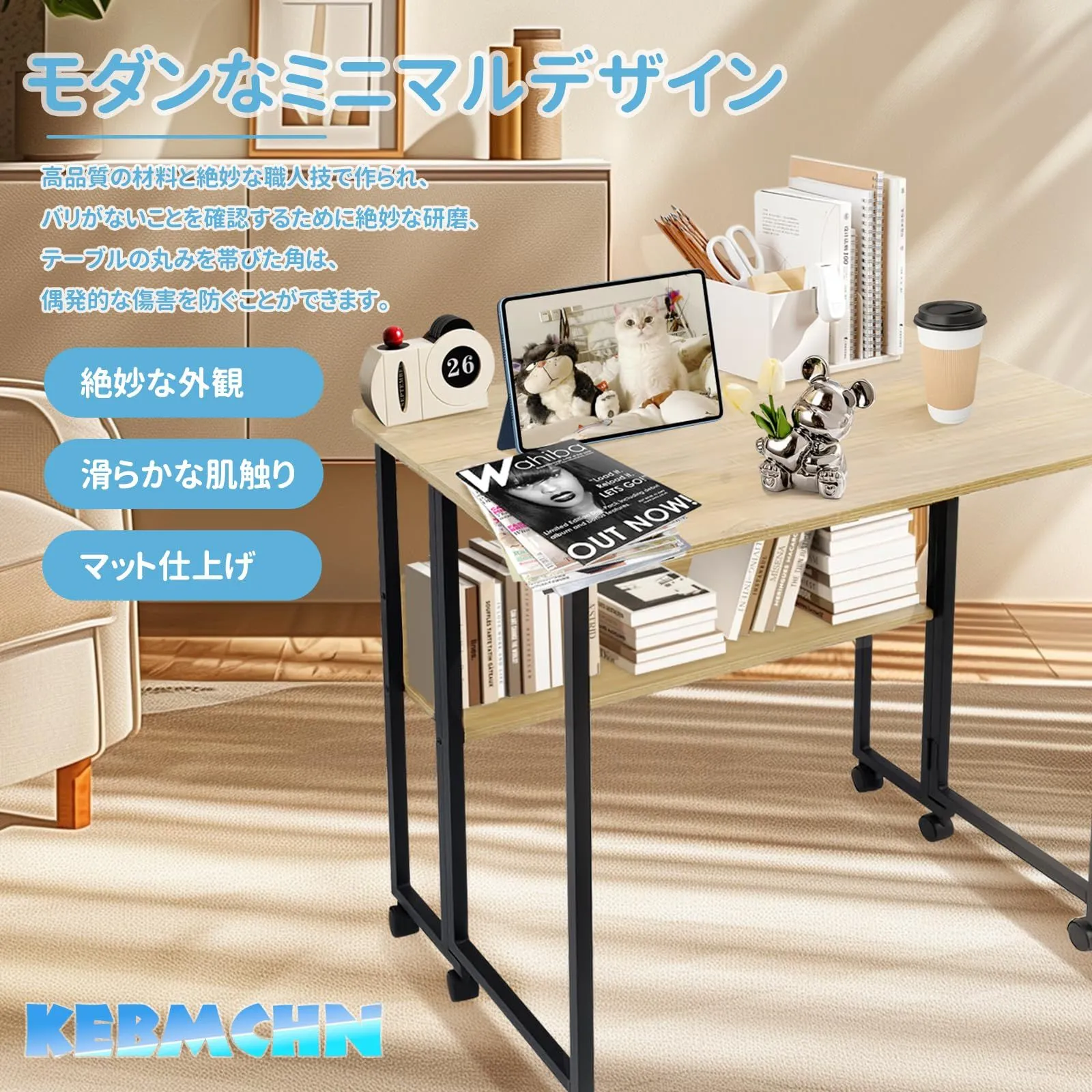 【数量限定】、 テレワークデスク、木製 パソコンテーブル 幅80 奥行60 可動式 高さ75cm 多機能 、キャスター付きテーブル、コンパクト 省スペース 組み立て簡単 勉強机 収納パーティション付き 大容量パソコンデスク 折りたたみ机、木目カラー (木目カラ