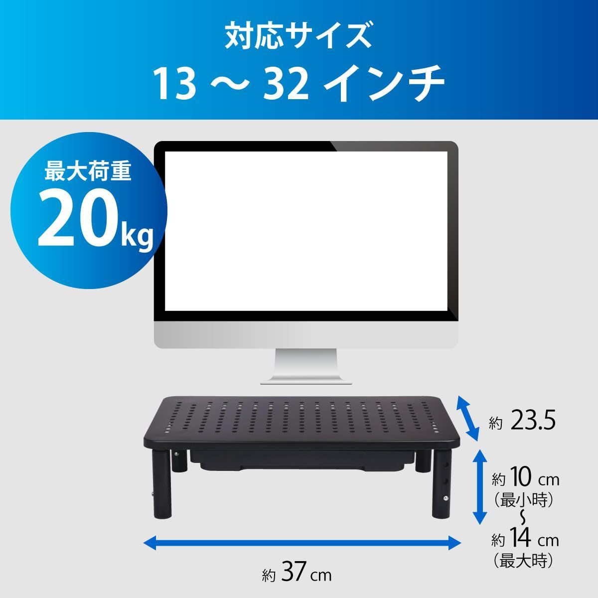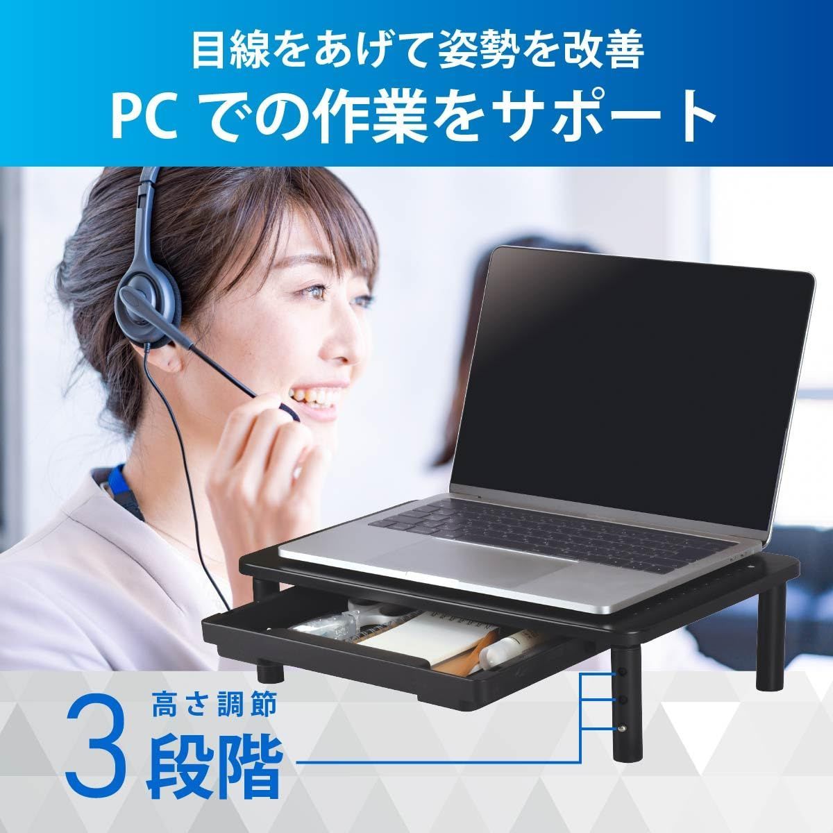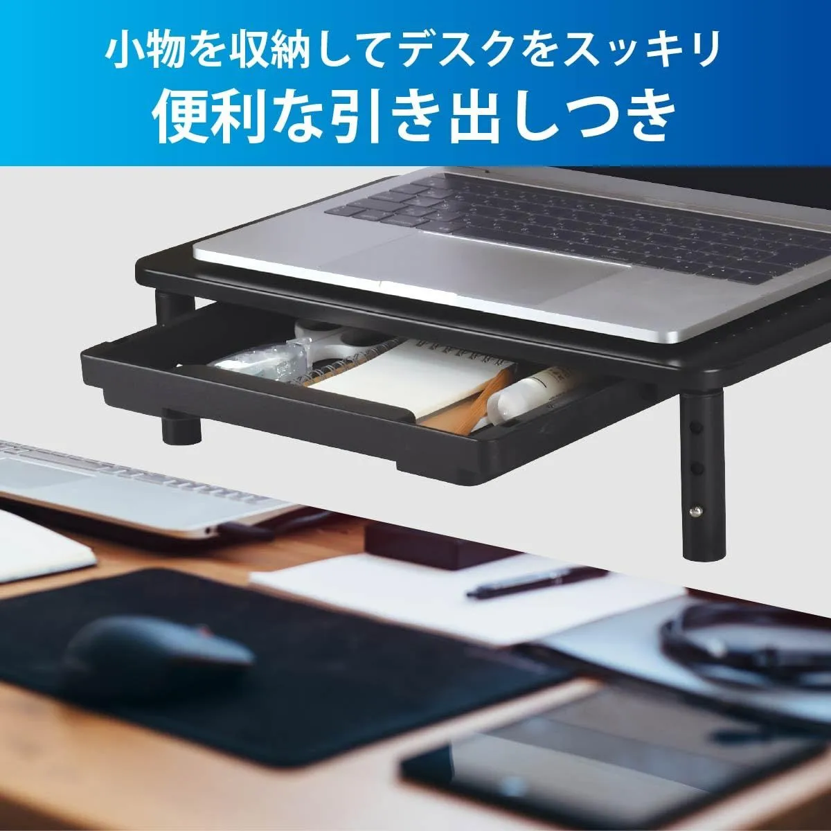 【人気商品】液晶ディスプレイスタンド ブラック プラスチック 置き台 OA-SDS01-K デスク パソコン置き 高さ3段階調節 01-7227 引き出しつき 机上 OHM パソコン台 オーム電機PCGEAR