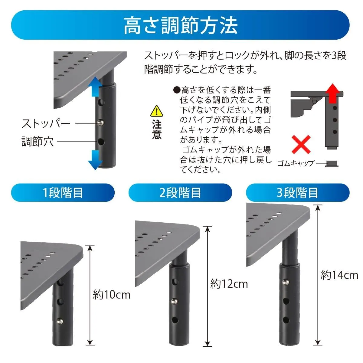 ●3段階(10cm・12cm・14cm)に高さ調節できます