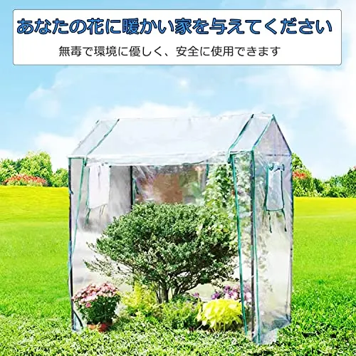 【迅速に発送】温室 ビニールハウス (鉄フレーム+カバー) PVCビニールハウス ガーデン温室 家庭用 植物 ビニール温室 大型 花園 植物の 温室テント 組立簡単/工具不要 防雨/防寒/防風対策 害虫/鳥防止 家庭菜園 、小型 ベランダに適用,付日本語版イン