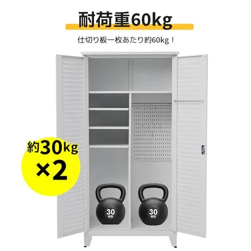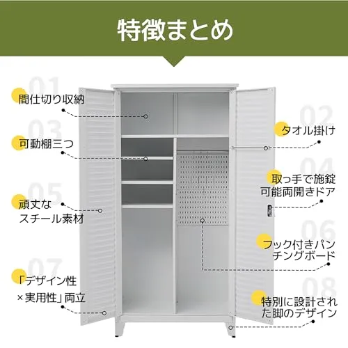 【安心のセキュリティ / ???外安全】 大切な備品を盗難や強風から守りたい方に。施錠可能な溝付きハンドル(鍵2本付)に加え、ハイテンション冷間圧延鋼板とアンカー固定設計を採用し、耐久性と安全性を両立しました。