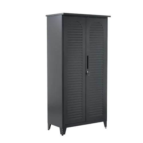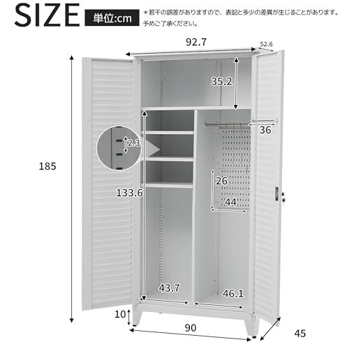 【迅速に発送】物置 屋外 大型 おしゃれ ホワイト 倉庫 185cm 700L 大容量 スチール製 鍵付き 収納庫 有孔ボード 掃除用具入れ ガーデン収納 北欧風 モダン 観音開き 組立式 (ブラック)