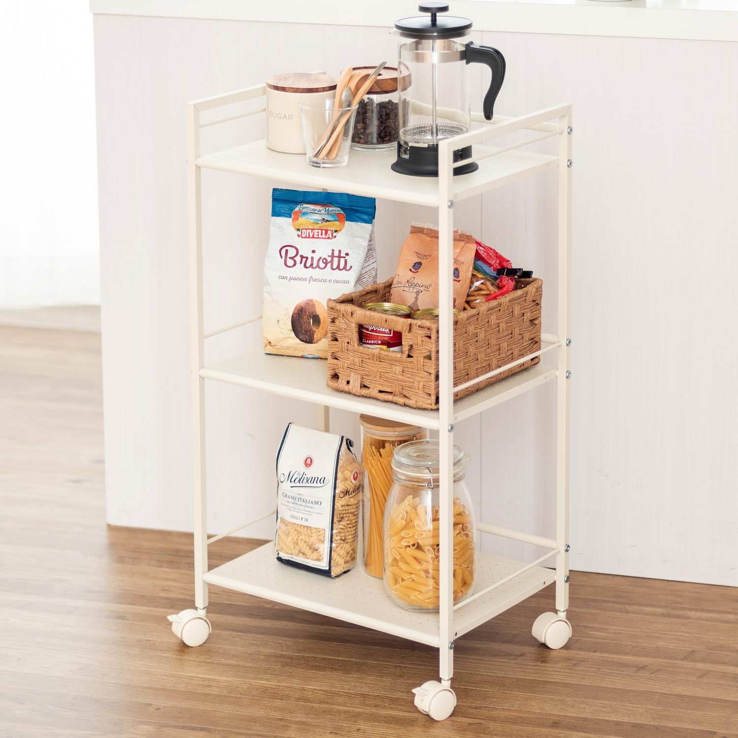 ドウシシャ キッチンラック キッチンワゴン 3段 キャスター付 カラーボックスサイズで使いやすく鉄製パンチングがお手入れ簡単 アイボリー GC-P76IV 幅43×奥行29.5×高さ76.5cm