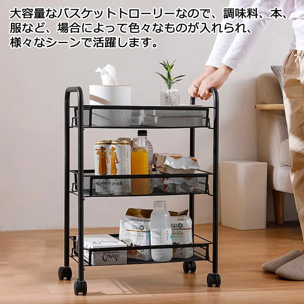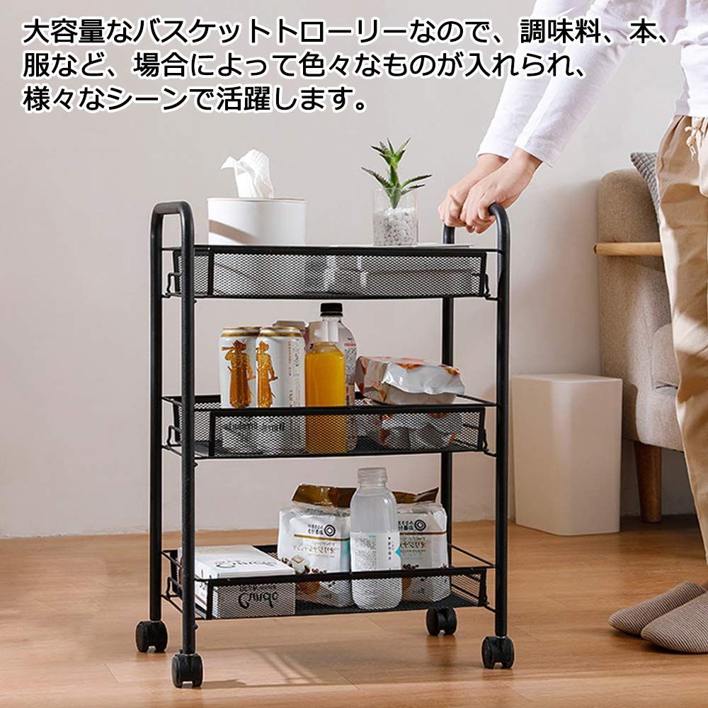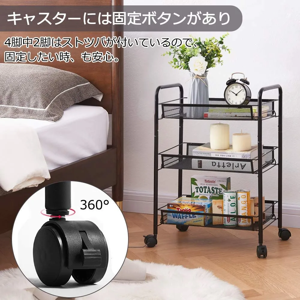 EKNITEY メタルラック キッチンワゴン メタル メッシュ キッチン カート 防錆 小物収納 サイドワゴン 3段 幅26.5×奥行45.5×高さ63.5cm ブラック