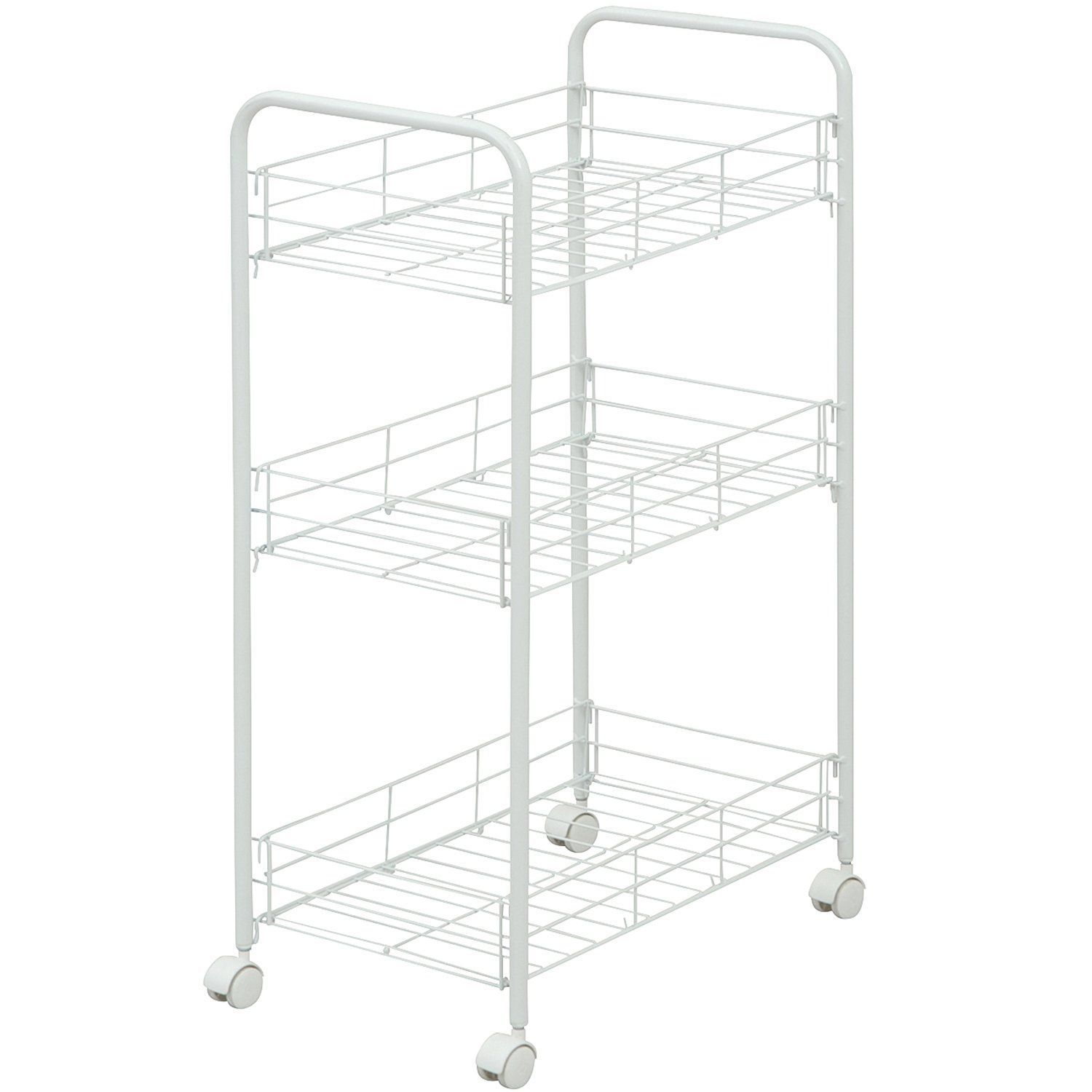 山善(YAMAZEN) スチールワゴン キャスター付き ホワイト RWR-3C(WH) 幅40×奥行25×高さ68cm
