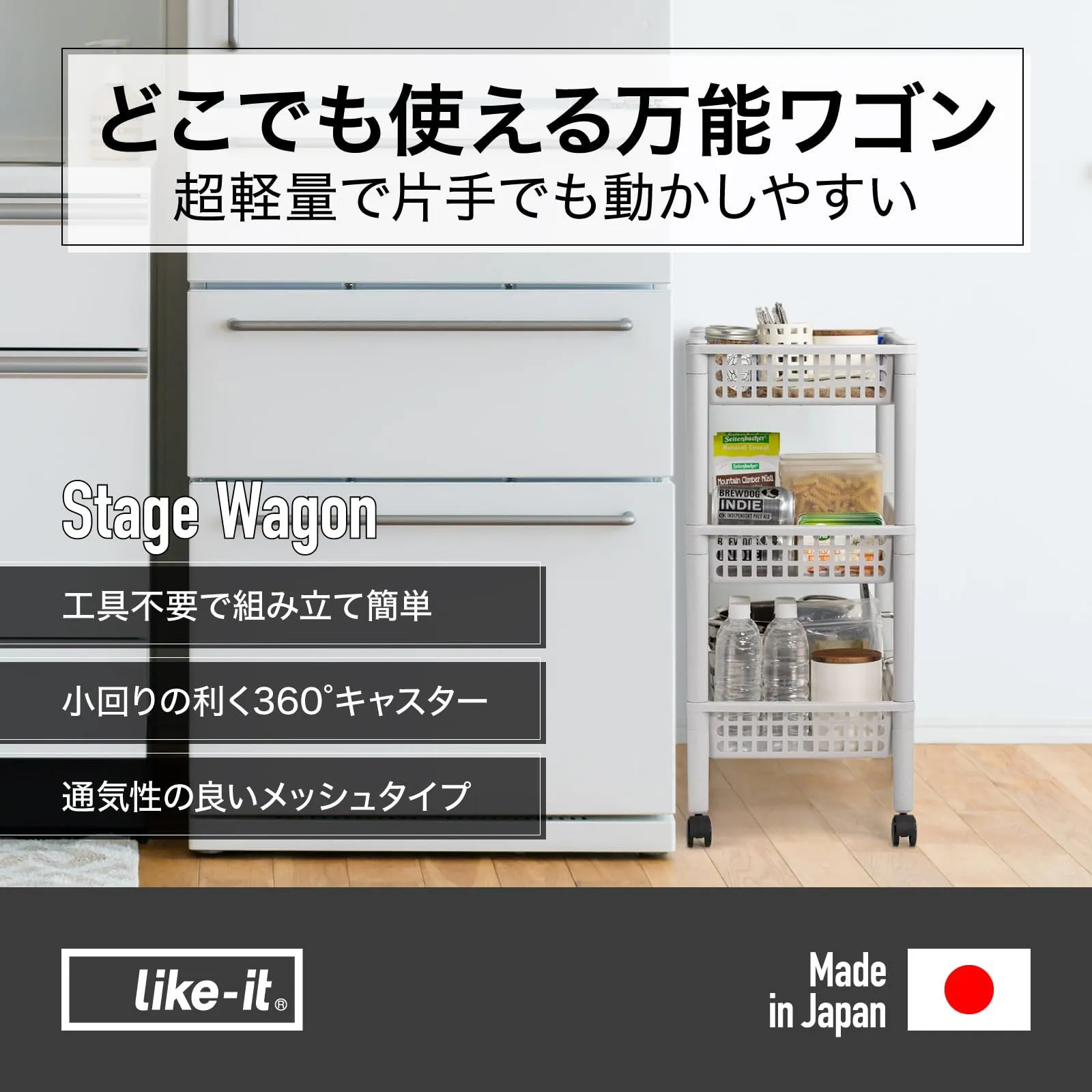ライクイット(like-it) キッチンワゴン 収納 ステージワゴン ストーングレー ST-30 サイズ/約幅31.8×奥行46.7×高さ70cm キャスター付