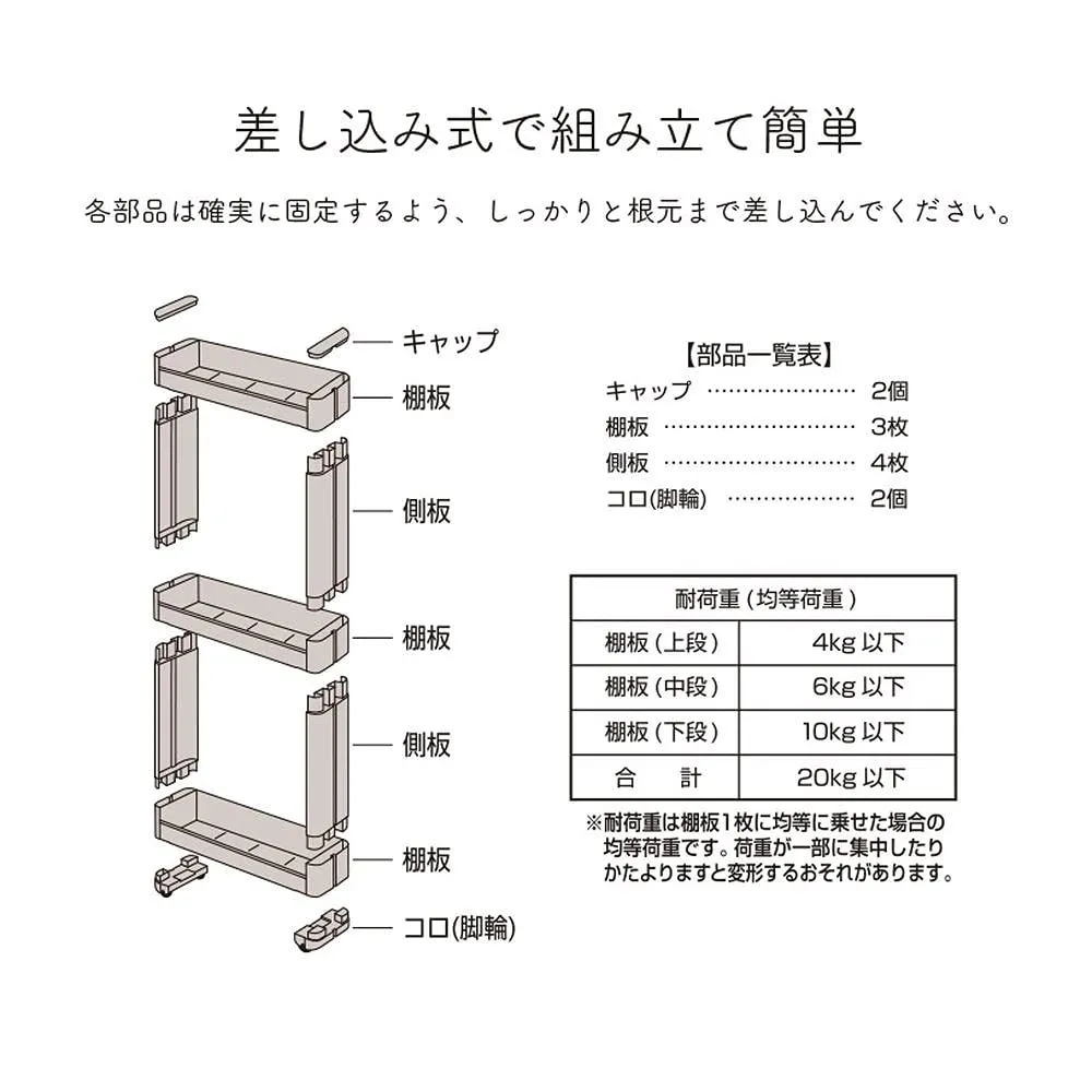 不動技研 スマートワゴンFit 45-3段 グレー スリム スキマにたっぷり収納 キャスター付き 幅12.5×奥行45×高さ76.2cm F2544 日本製