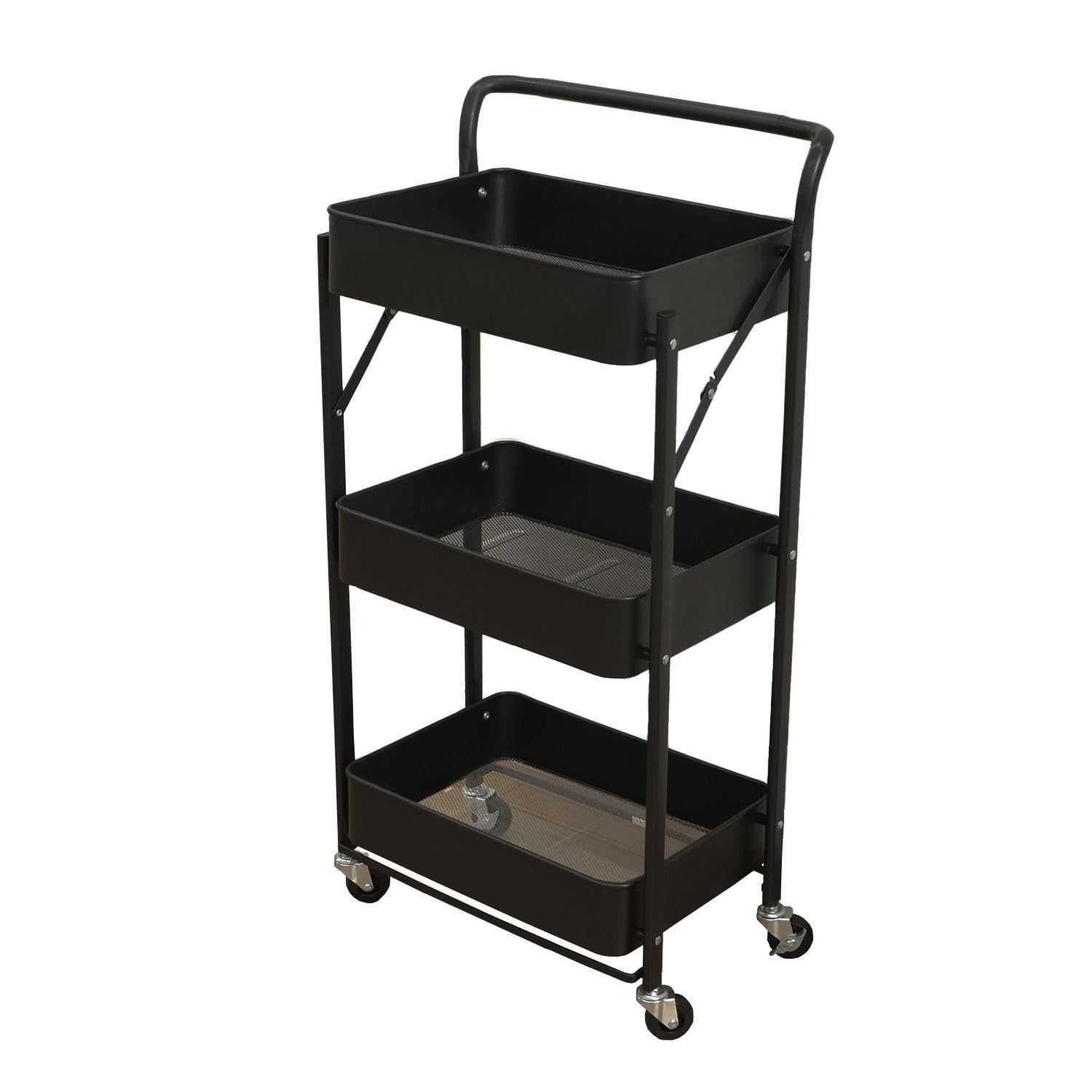 エイアイテック(AITECH) AIS 折りたたみトローリーワゴン 3段 幅45.5cm 奥行30.5cm 高さ89cm ブラック XOW-4589BK BK