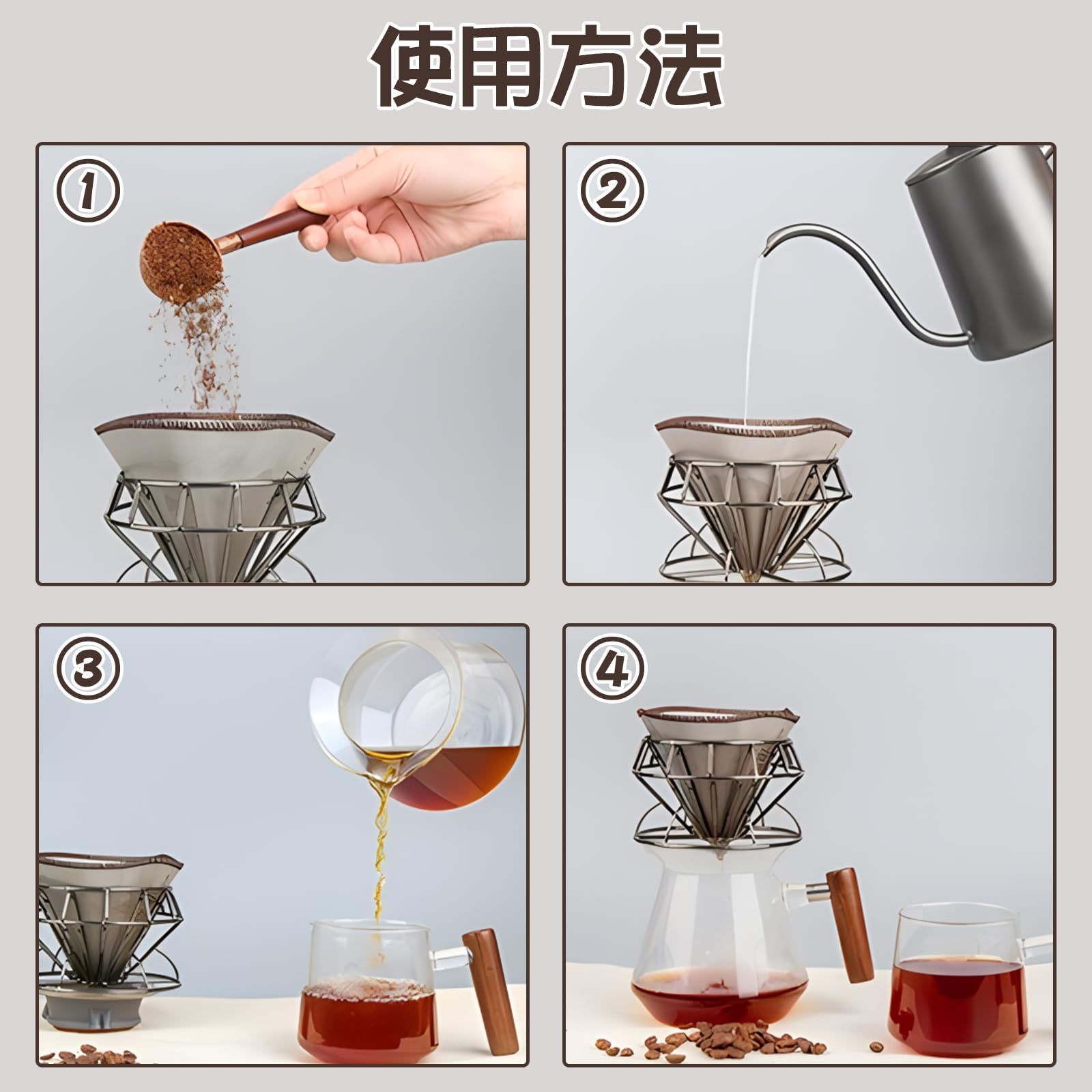 【無駄を減らします】ステンレス鋼の円錐形のフィルターを複数回適用でき、素晴らしい香りでコーヒーの味をよりまろやかにし、紙の無駄を減らします。