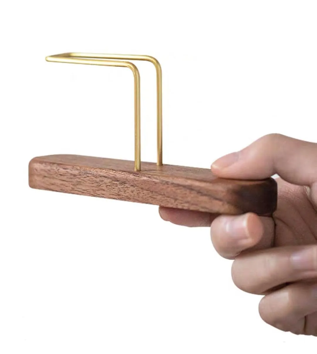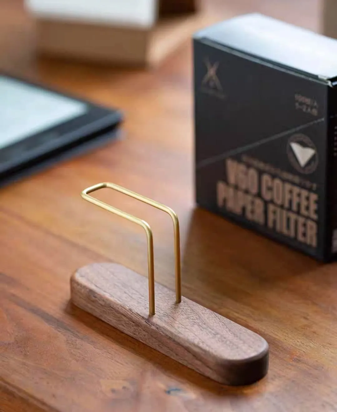 美しい木目のクルミ材とファション感溢れる真鍮棒の組み合わせがとってもおしゃれなコーヒーフィルターホルダーです。