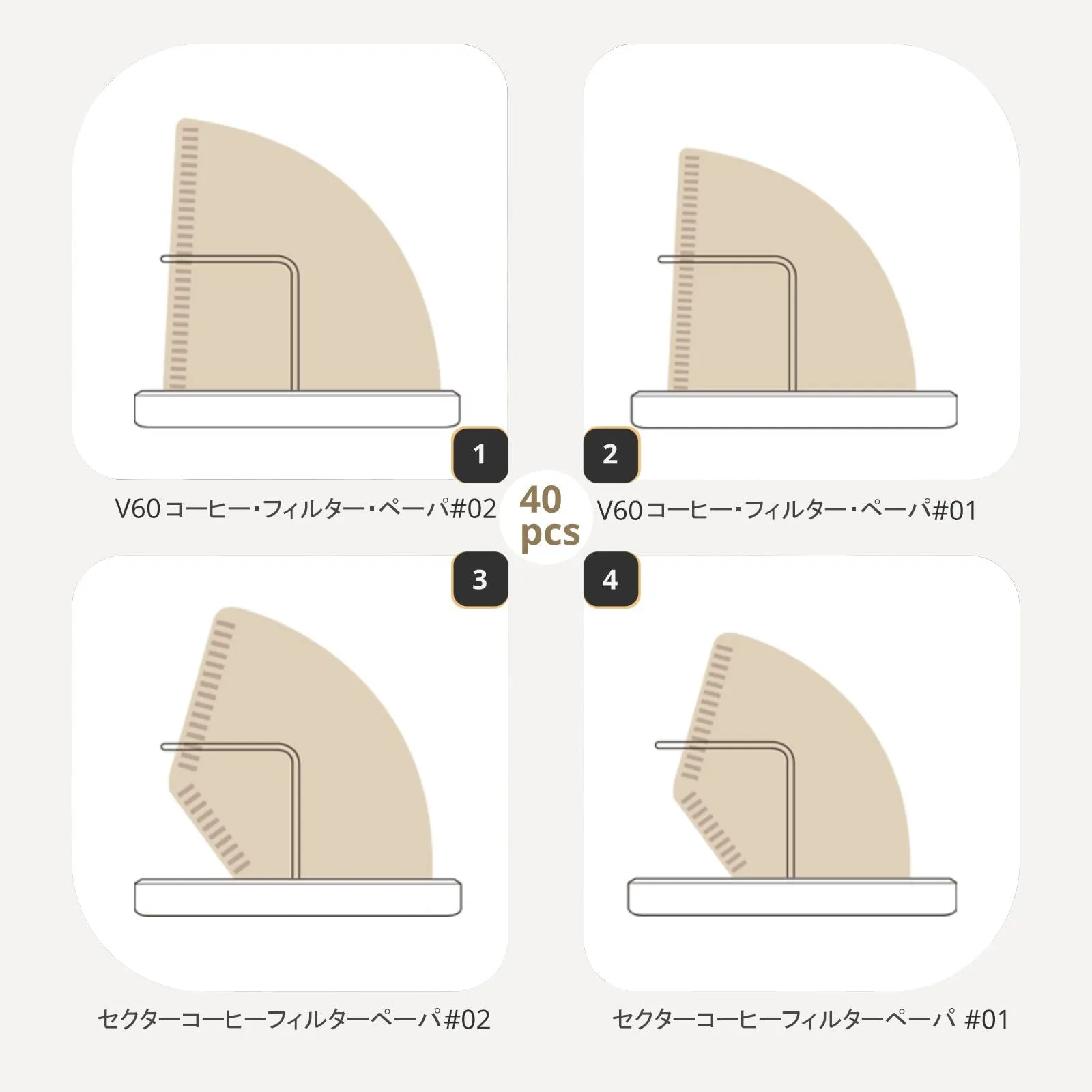 大容量: コーヒーフィルターが約40枚収納でき、01用と02用を互い違いに収納できるため、取り出しやすいです。