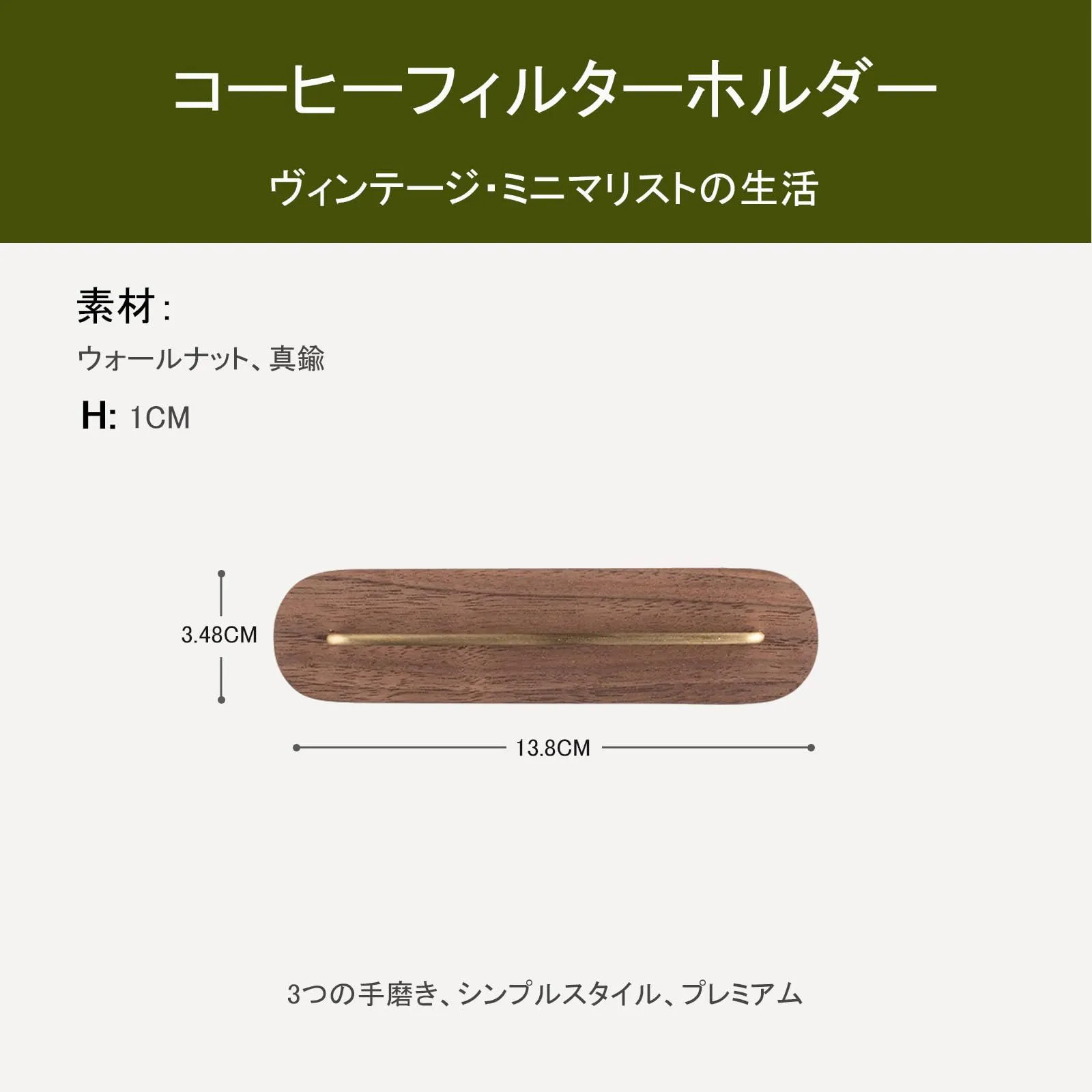 高品質材質: このコーヒーフィルターホルダーは、ウォールナット材のベースと真鍮のフレームが特徴で、高級感があります。