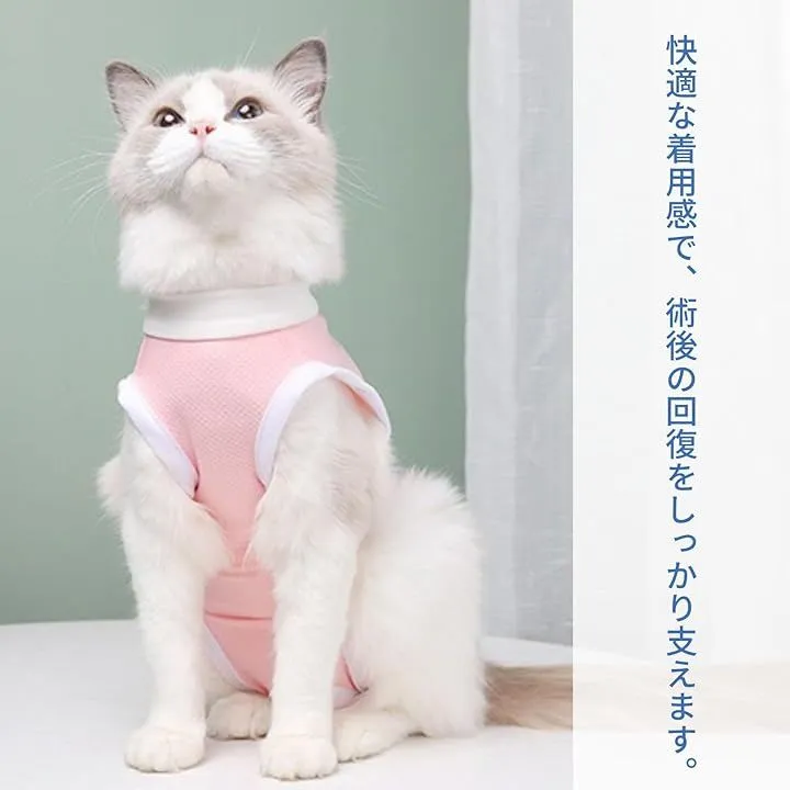 COZENTA 術後ウェア 猫 術後服 皮膚保護 傷舐め防止 体型にフィット (ピンク, S)