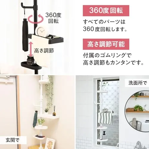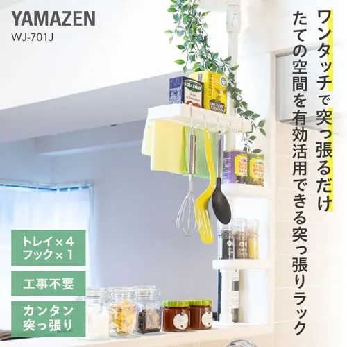 山善(YAMAZEN) 突っ張り ラック ポールハンガー 棚 キッチンラック タオル掛け 壁面収納 カンタン設置 洗面所 玄関 収納 ワンタッチ突っ張り 幅18×奥行30×高さ98-160cm 隙間収納 賃貸 組立品 ホワイト WJ-701J(WH)★m