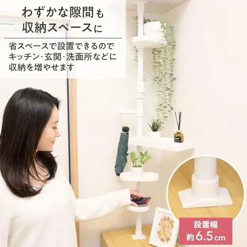 【省スペースで空間を活用】突っ張り方式で、空間を有効活用できるコンパクトなラックです。設置幅は約6.5cmと、わずかなすき間を収納スペースに活用できます。