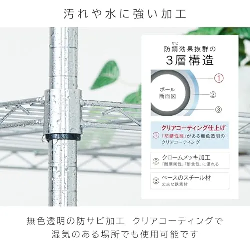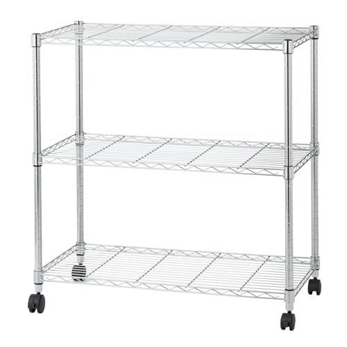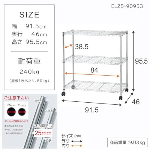 ドウシシャ メタルルミナスラック キャスター付き スチールラック幅90 3段 EL25-90953 軽量で組立簡単工具いらず 幅91.5×奥行き46×高さ95.5cm 棚板耐荷重80kg 全体耐荷重240kg 頑丈 防錆加工 ポール径25mmパーツ対応 キ★m