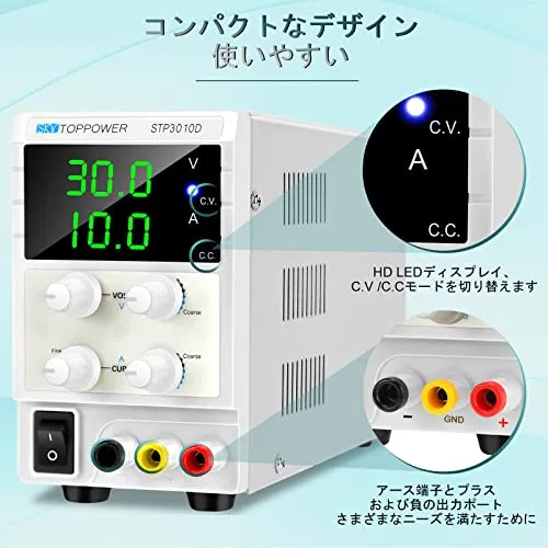 【調整可能なDC電源】:直流安定化電源は調整可能0-30V / 0-10A、精度0.1V、0.01A 3桁のLEDディスプレイにより、暗い場所でも電圧と電流の値をより正確に読み取ることができます。
