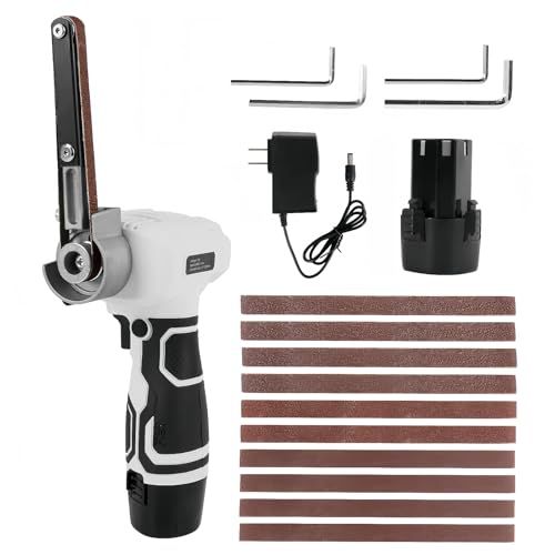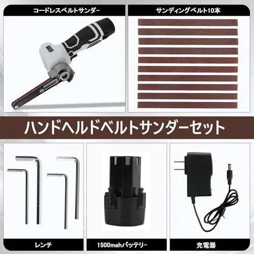 ベルトサンダー 電動 バッテリー2個付き 充電式 小型ベルトグラインダー 180°角度調整可能 替えベルト10本付属 充電器付属 電動ヤスリ 研磨 錆落とし バリ取り DIY 金属加工用 ベルトサイズ:330×10mm★m