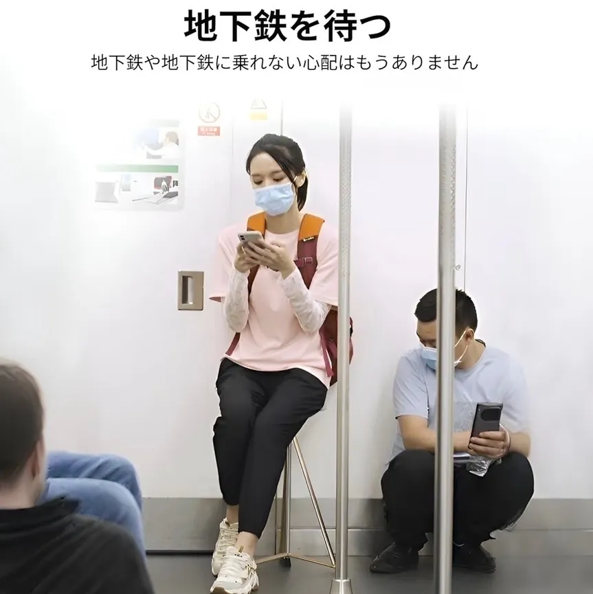 【超軽量設計で持ち運びが簡単】アルミ製のステッキチェアは、超軽量で、どこにでも簡単に持ち運べます。高齢者の方や旅行、遠足、スポーツ観戦、ゴルフ観戦、釣りなど、さまざまなシーンで活躍します。 2.