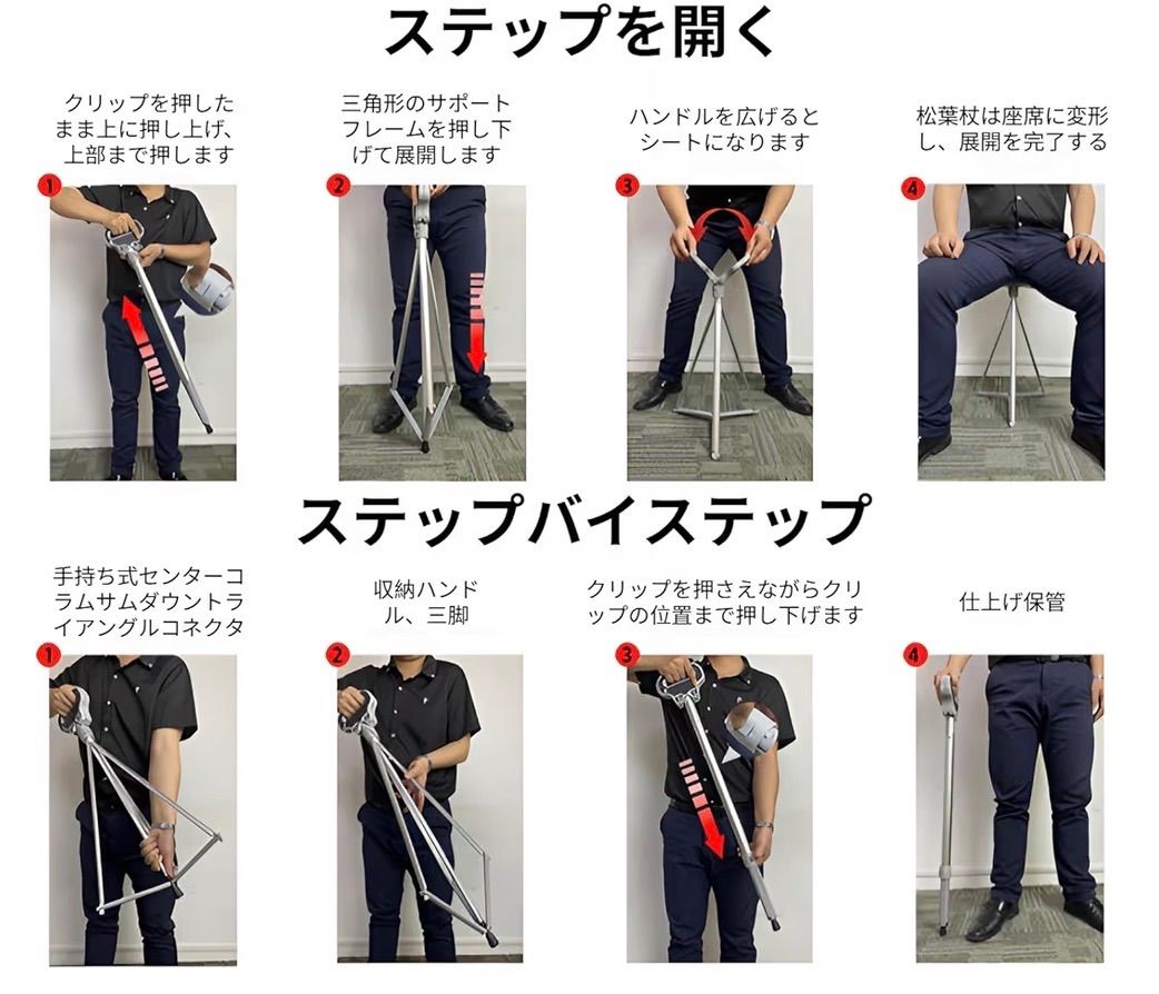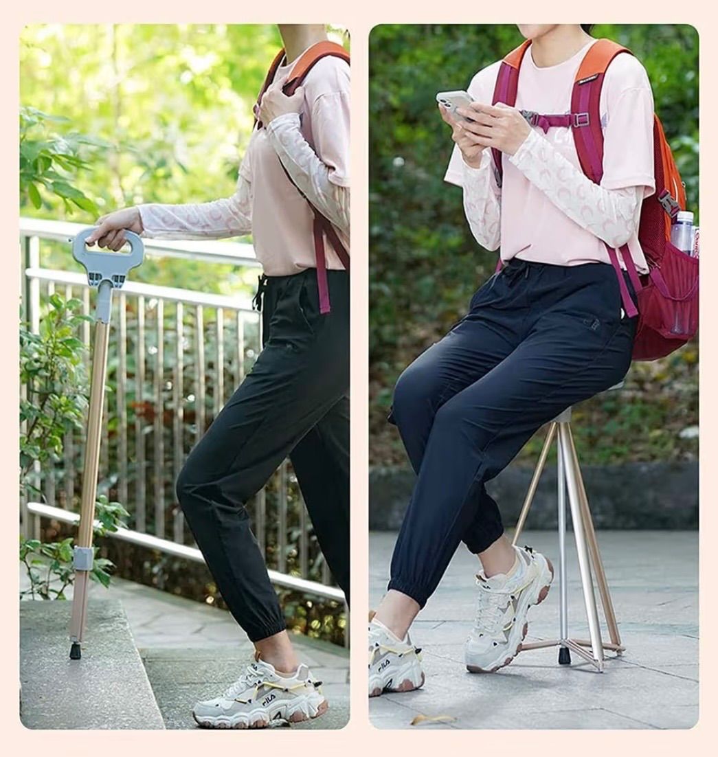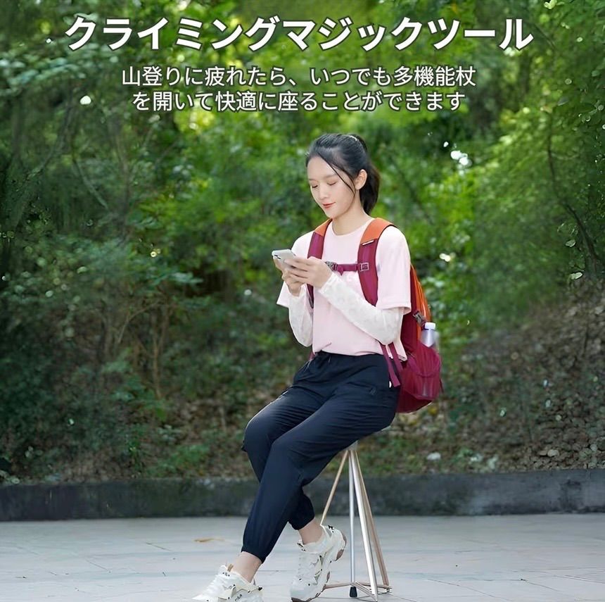 ステッキチェア 折りたたみ杖 超軽量 登山杖 アルミ製 3脚 杖 椅子 高齢者適用 歩行補助杖 三脚 椅子 杖 散步 滑り止め スティック 持ち運び 介護 旅行 遠足 スポーツ観戦 ゴルフ観戦 釣り用 コンパクト椅子 ポタブル ワンタッチ