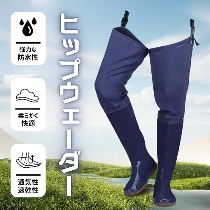 COZENTA ヒップウェーダー 長靴 防水 防滑 釣り 田植え 作業用 (ネイビー, 25cm)