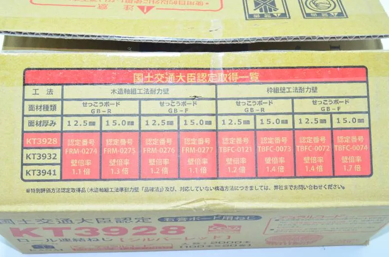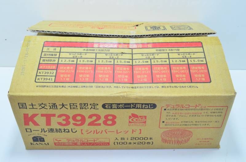■商品情報 カナイ(KANAI)の石膏ボード用ロール連結ねじです。 型番はKT3928です。 シルバーレッド仕様となります。 国土交通大臣認定取得品です。