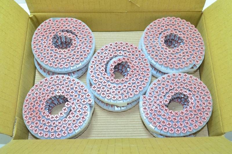 ■仕様 用途:石膏ボード用 種類:ロール連結ねじ 仕上げ:シルバーレッド 入数:2000本(100本×20巻)