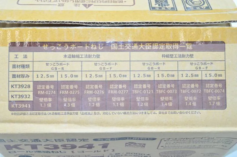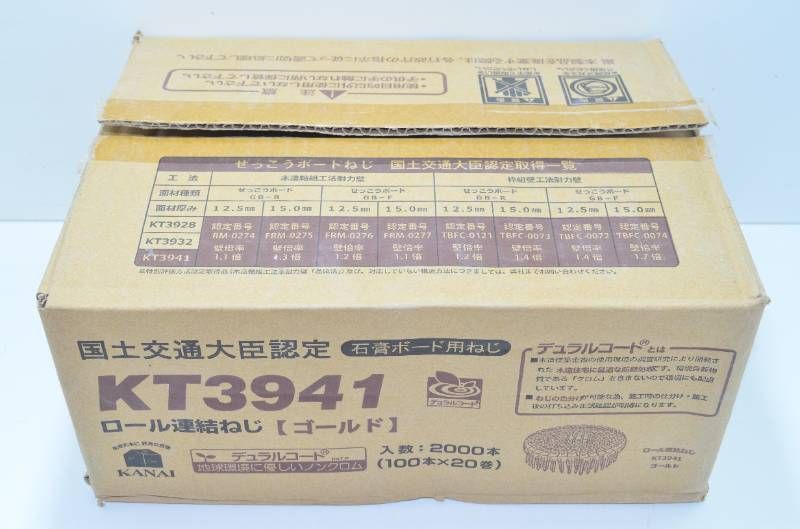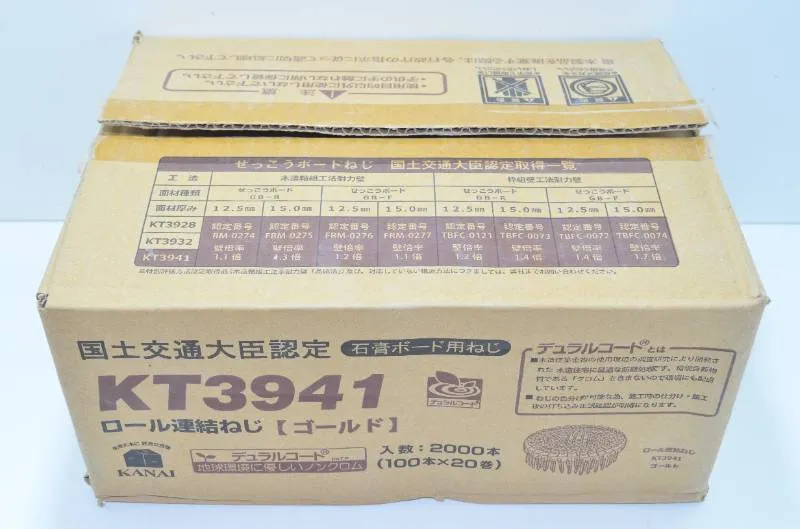 ■商品情報 カナイ(KANAI)の石膏ボード用ロール連結ねじです。 型番はKT3941です。 ゴールド仕様となります。 国土交通大臣認定取得品です。