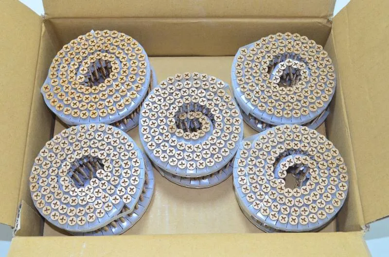 ■仕様 用途:石膏ボード用 種類:ロール連結ねじ 仕上げ:ゴールド 入数:2000本(100本×20巻)