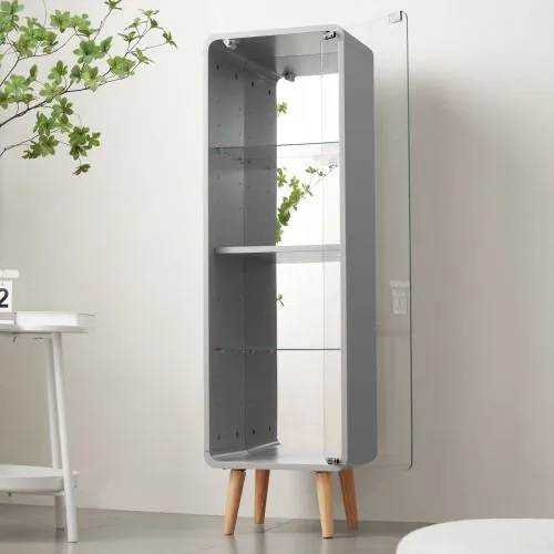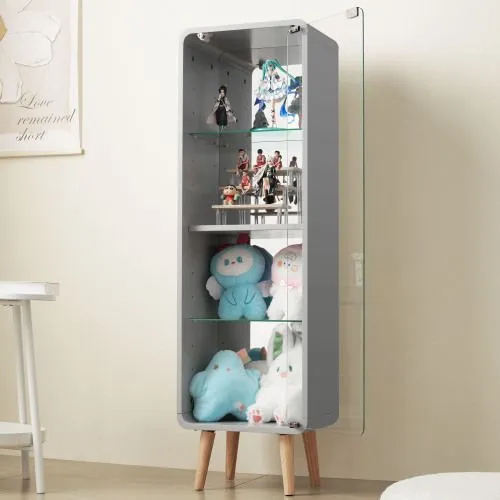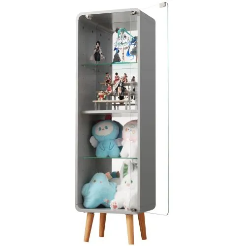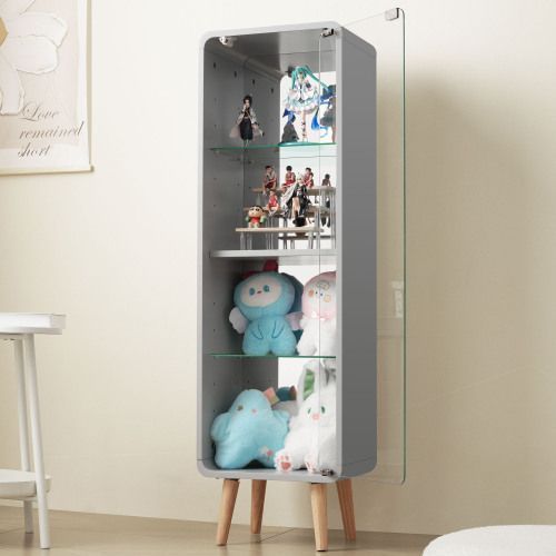 コレクションケース コレクションシェルフ ガラスディスプレイキャビネット4段 高さ調節可能 フィギュア 収納 背面ミラー 強化ガラス棚 サイズ:幅36*奥行26.5*高さ121CM グレー
