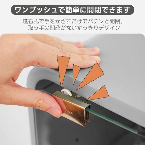 【ワンプッシュで簡単に開閉できます】ガラス扉部分はマグネットプッシュ式を採用、取っ手の凹凸が無く、ワンプッシュで簡単に開閉していただけます。